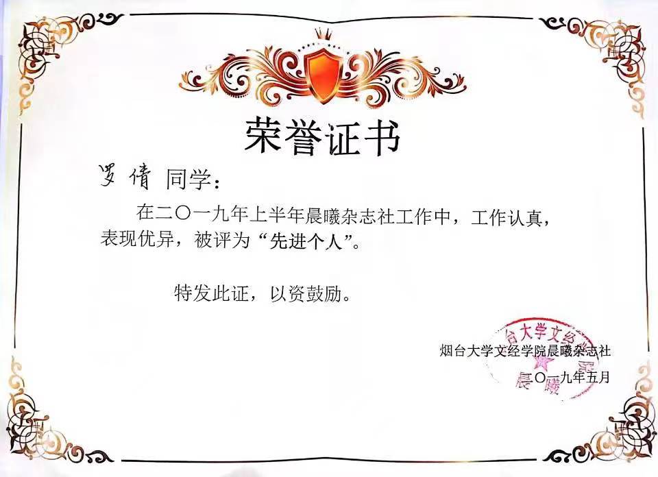 罗倩,食1802-1班员工,曾担任学院女生部副部、晨曦外联部部委。荣获2018年新生军训优秀学员、2018-2019学年优秀员工荣誉称号、2019年晨曦杂志社先进个人、2020-2021学年优秀员工荣誉称号等。