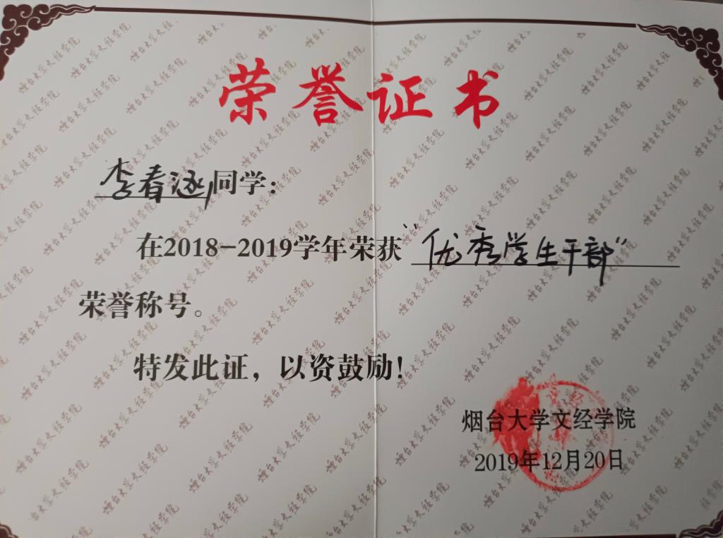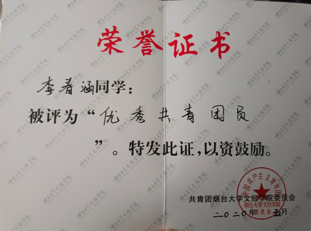 舍长张福荣被海南大学录取,曾获得2019年外研社杯英语写作大赛三等奖,2020年环保公益活动志愿者荣誉证书,2021年烟台市首届老员工创客“蓝色智造”大赛优秀奖等荣誉。李春涵被青岛大学录取,是班级的组织委员,曾获得2018年度优秀共青团员,2019年优秀员工干部,2020年、2021年优秀共青团员,2021年优秀员工荣誉称号以及2022年省级优秀毕业生等一系列荣誉。刘瀛被山东师范大学录取,曾获得2018-2019学年优秀员工荣誉称号。张亦涵被安徽大学录取,曾担任青年志愿者协会副部长。于雪莹被山东农业大学录取,担任团支书,曾担任宣传部副部长,获得过2018年、2019年烟台大学优秀共青团员,2018-2019学年优秀员工,2018年烟台大学文经学院宣传板设计大赛三等奖以及2019年烟台大学文经学院“青春志中国梦”宣传板设计大赛三等奖。