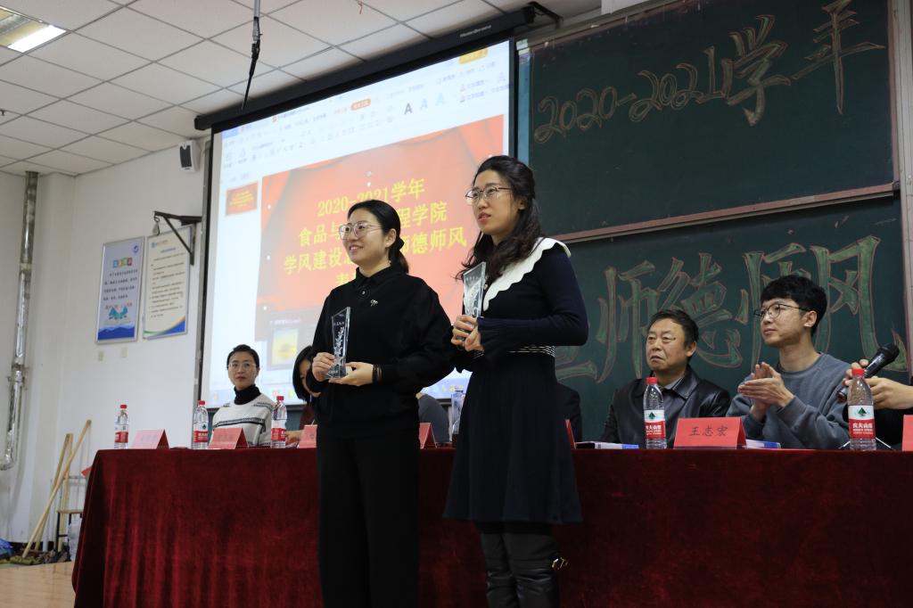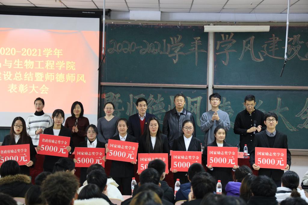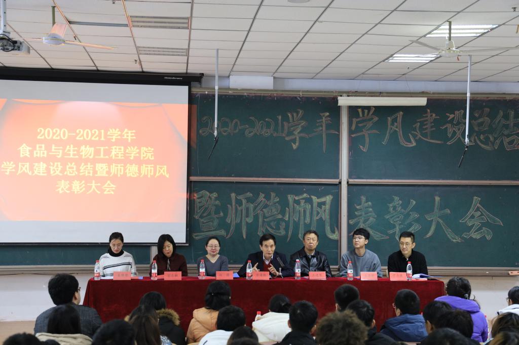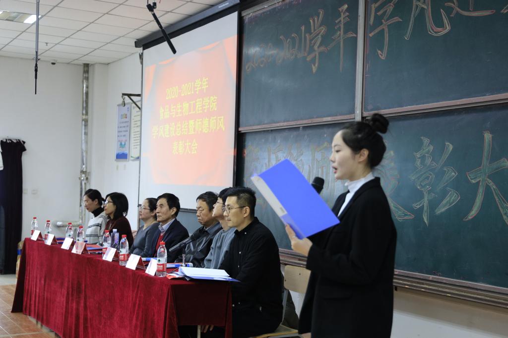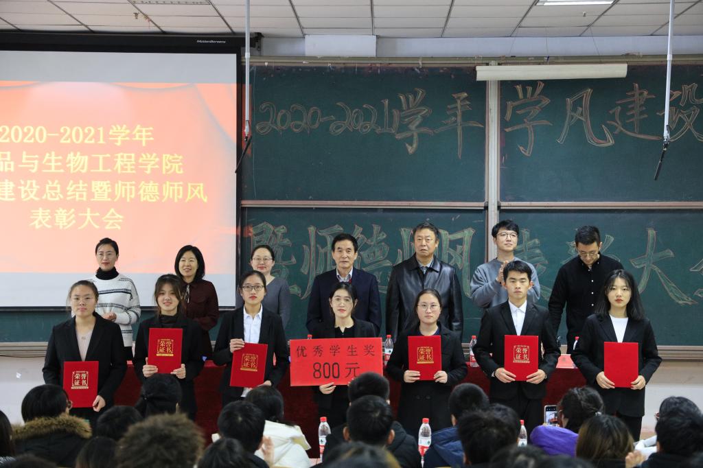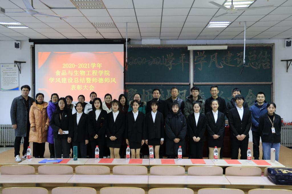 为表彰先进,树立典型,12月17日中午,食品学院于二教115隆重召开2020—2021学年学风建设总结暨师德师风表彰大会。经理、党总支书记金海珠,校督导、专业负责人王进军,党总支副书记赵蓓,教务办公室主任宫志娴,学院办公室主任韩明月,科研秘书赵蕾,食科教研室主任王晓君,食安教研室主任姜倩倩,生工教研室主任王志宏,高层次人才孙盛千,专业教师李静、秦红玉、王晋、王跃猛,获奖代表以及大一全体员工参加会议,大会由辅导员于小康主持。