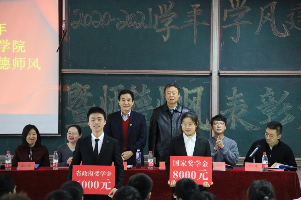 大会首先对学院第四届“最美教师”李静、“教书育人楷模”赵蕾进行了表彰。“最美教师”李静上台发言,分享了自己在教学以及班主任工作中的心得体会。随后,对国家奖学金、省政府奖学金、国家和省政府励志奖学金、祥隆奖学金、董事长奖学金等学院各类奖学金以及优良学风新星班、先进班集体进行了表彰。领导老师对获奖代表一一颁奖,希望受表彰的个人和集体珍惜荣誉、再创佳绩。接着,国家奖学金获得者詹梦燃同学分享了她在学习和工作中的收获与体会,鼓励大家珍惜韶华,发奋学习,努力工作,为学校、学院的发展积极贡献力量。先进班集体代表张嘉恒、林雪静分享了班级的经验做法,优秀的班集体离不开每一位同学的努力。随后,经理、党总支书记金海珠总结发言,他对获得表彰的师生表示祝贺,对一年来为学院发展作出贡献的全体师生表示感谢。希望大家都能向今天获表彰的师生学习,以他们为榜样。师德师风和学风建设始终是学院的重要工作,要常抓不懈。最后,学习部部长陆莹莹带领全体员工作诚信考试宣誓。