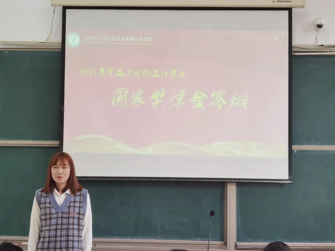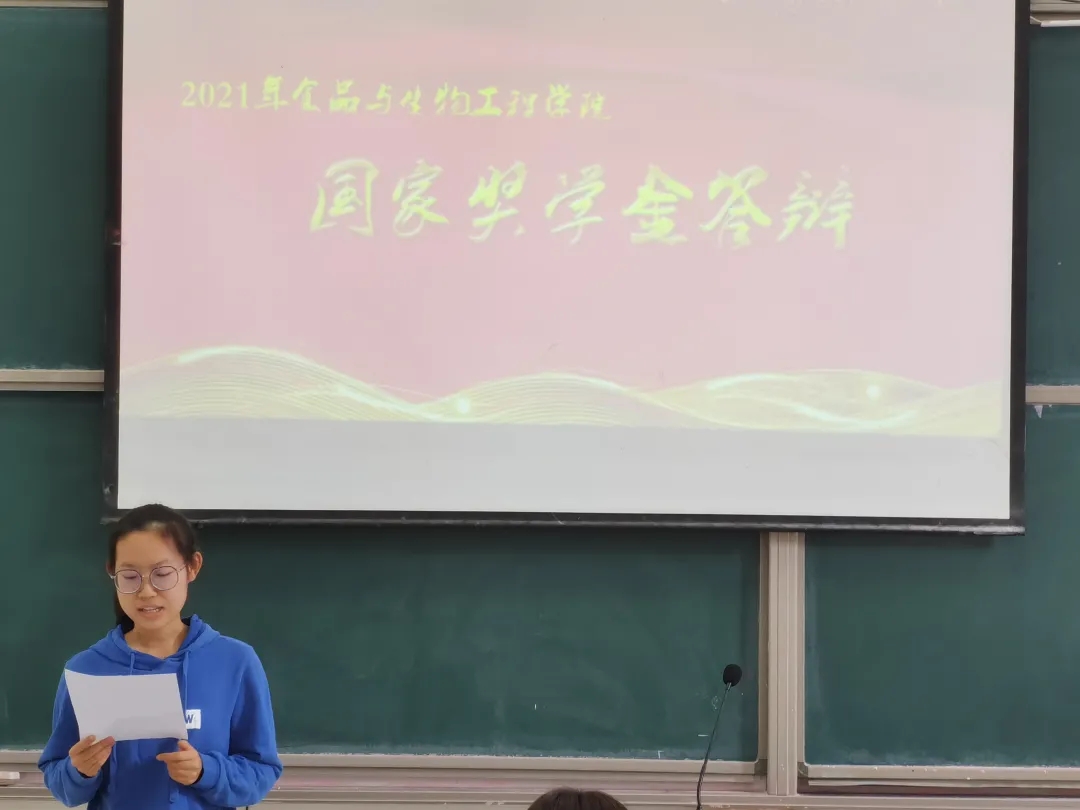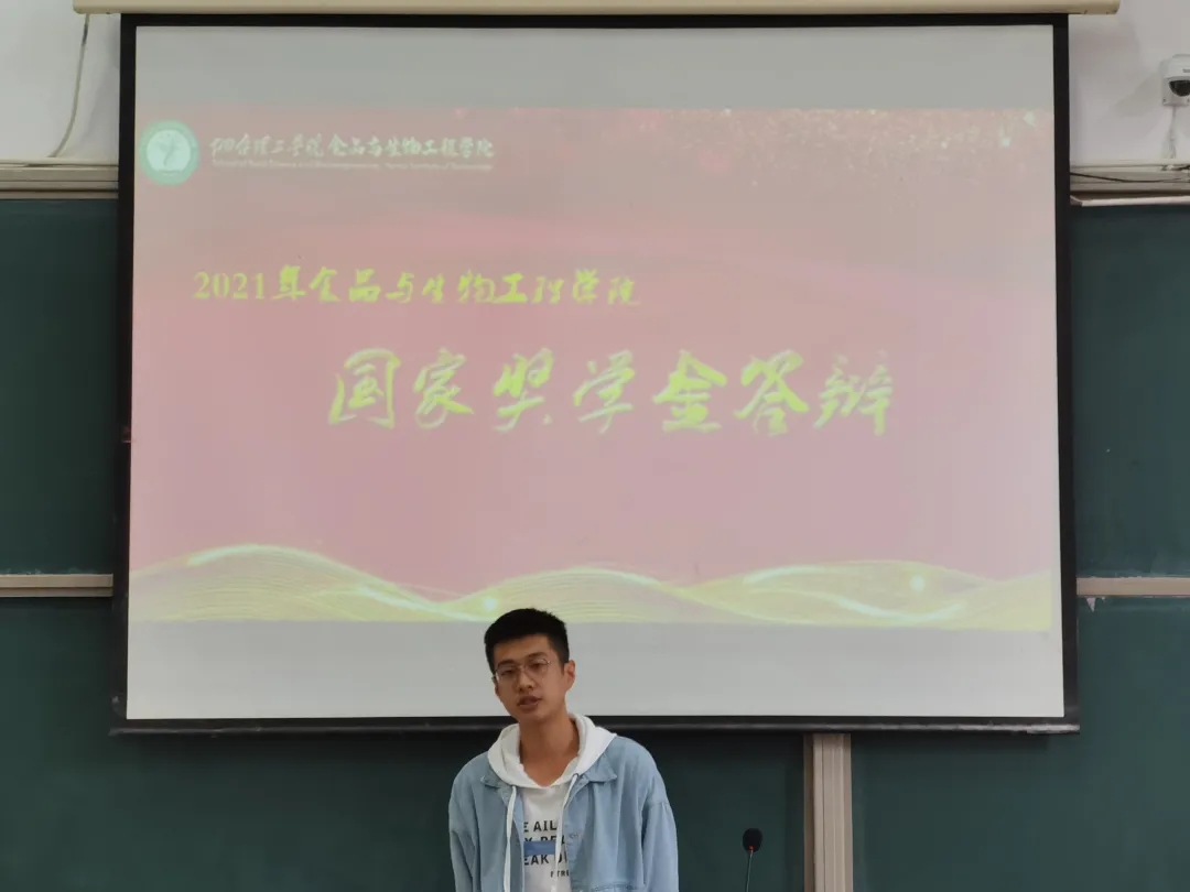 会议开始,于小康老师就国家奖学金评选条件及答辩者上台答辩的具体事宜做了简要说明。随后,各位答辩者按照事先抽签的顺序,依次上台陈述答辩理由,从个人简介、思想状况、学习情况、获奖情况、实践活动等方面进行了简明扼要的陈述,客观阐述了自己申报奖学金的优势,充分展现了食品学子的优良风貌。答辩结束后,赵蓓老师进行点评总结,她首先肯定了同学们取得的优异成绩,表示要通过此次答辩看到自身的差距,进一步明确今后努力的方向。她希望每一位食品学子都能能不忘初心,勇往直前、再接再厉,取得更辉煌的成绩。