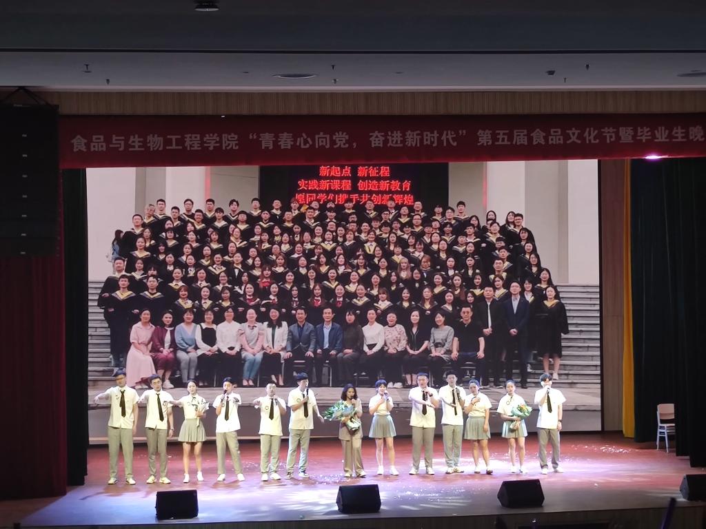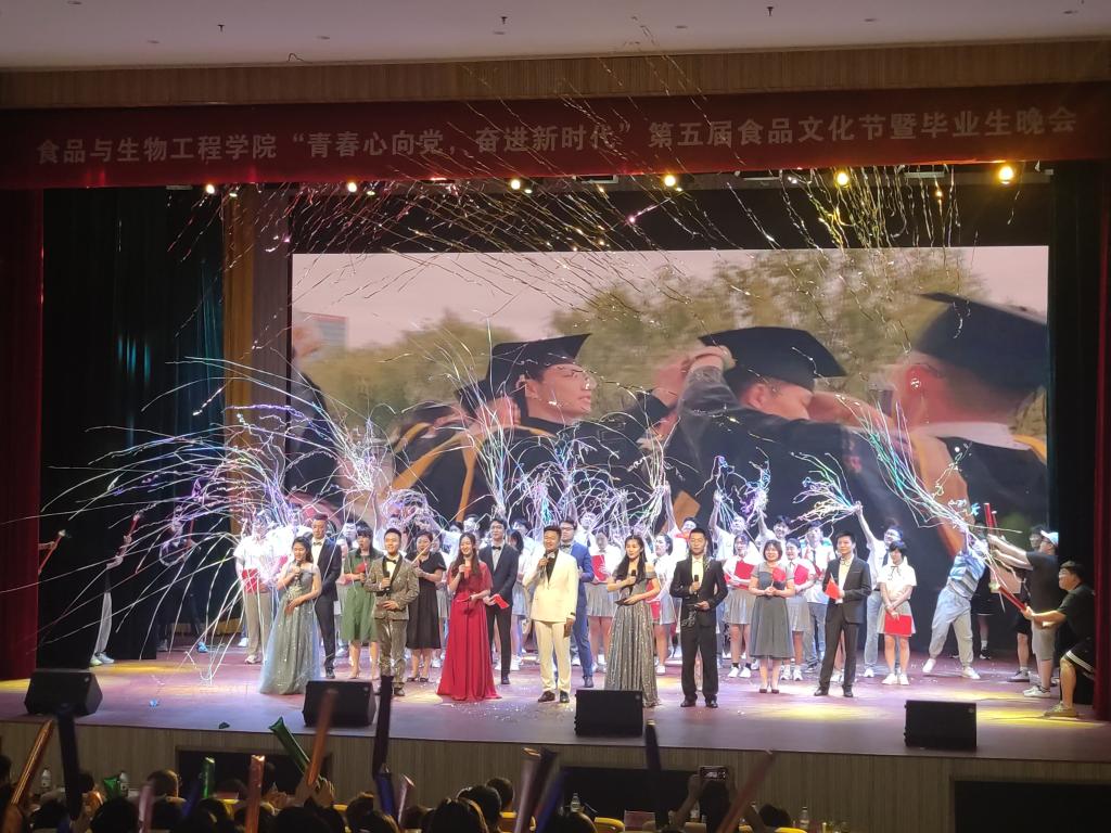 6月15日晚,太阳成tyc7111cc于三教一楼报告厅举办第五届食品文化节暨毕业生晚会。集团工会主席史毅、学工处处长杜娟、组织统战部部长张琼玉、团委书记申海滨、华润置地徐龙勋经理、龙成检测技术有限公司质量部韩娜部长、太阳成tyc7111cc经理金海珠、专业负责人王进军、党总支副书记赵蓓、副经理高娜、各学院团总支书记及太阳成tyc7111cc全体师生齐聚一堂,共享盛典。