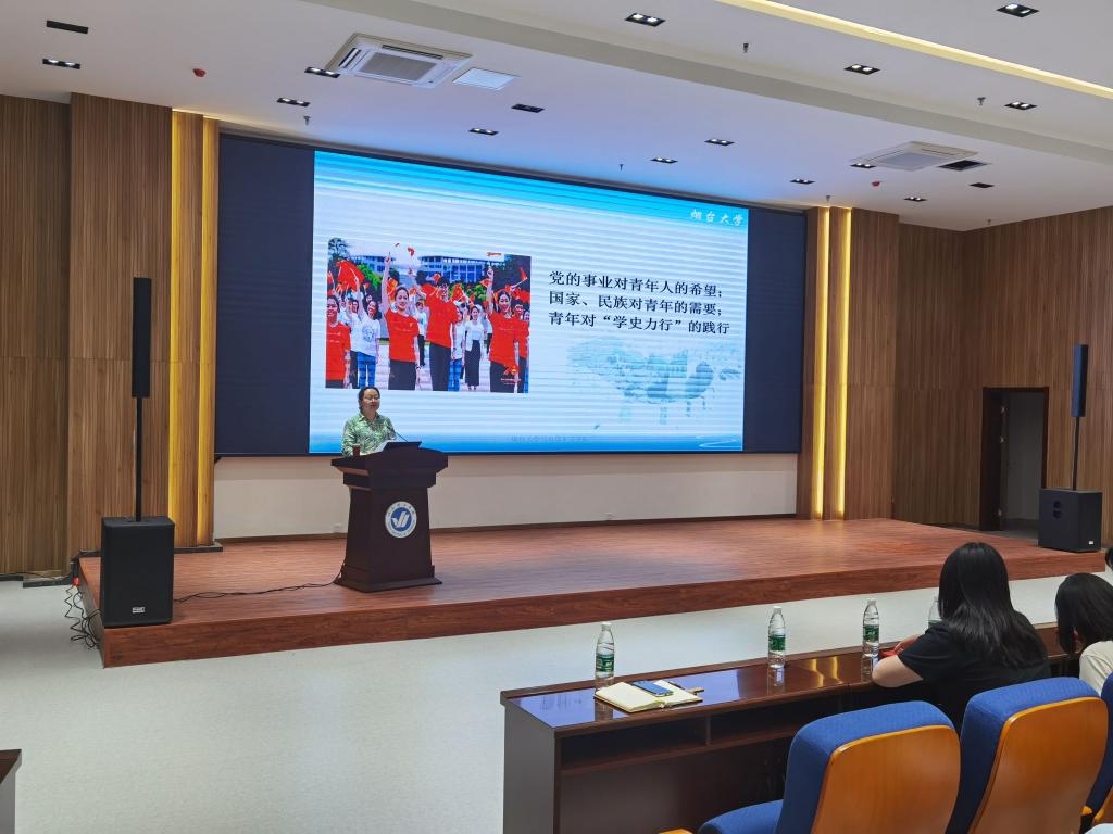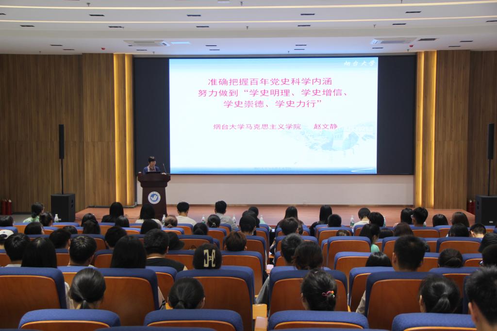 为深入开展党史学习教育,弘扬和传承党的优良传统,6月10日下午,太阳成tyc7111cc特邀烟台大学马克思主义学院赵文静教授于三教六楼报告厅为师生开展:“准确把握百年党史科学内涵,努力做到学史明理、学史增信、学史崇德、学史力行”党史学习教育专题讲座。讲座由党总支副书记赵蓓主持,全体师生党员及员工代表到场聆听。