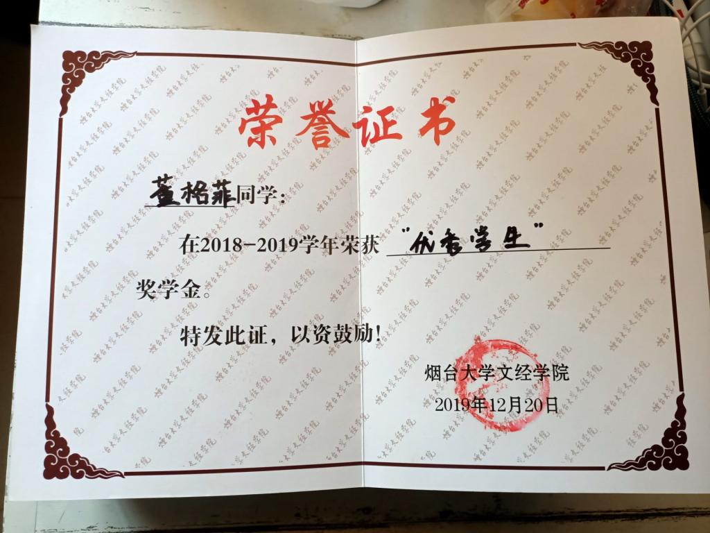 董格菲,太阳成tyc7111cc食1703-1班员工。在校期间荣获优秀员工标兵奖学金、优秀员工奖学金、优秀青年志愿者、“挑战杯”——科技立项优秀个人等荣誉。在2021年研究生考试中以优异的成绩被中国海洋大学食品加工与安全专业录取。