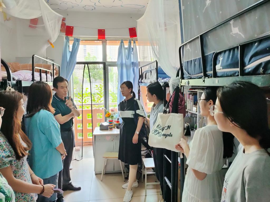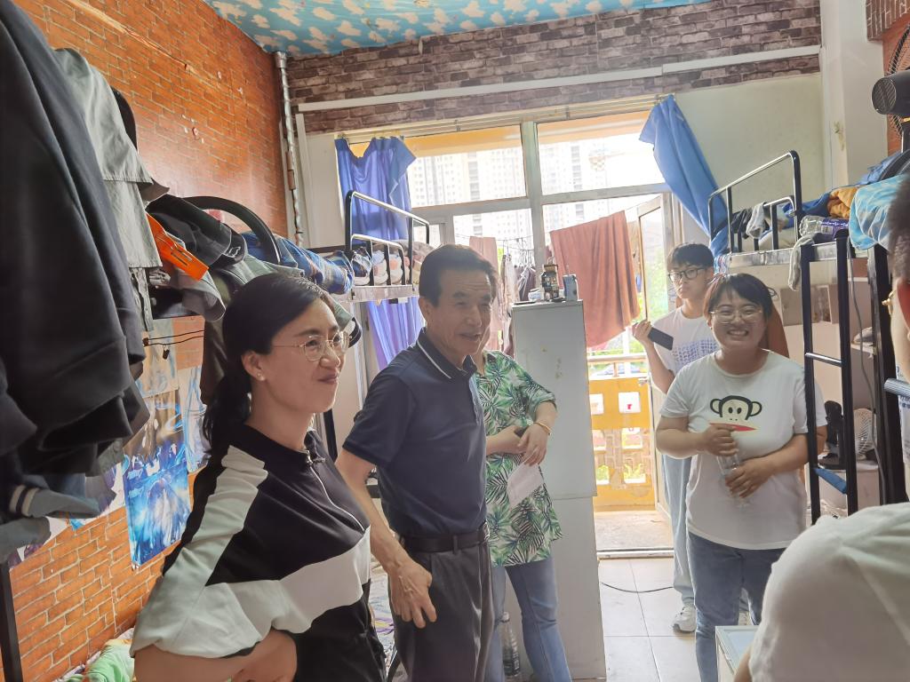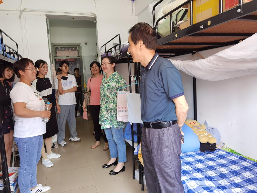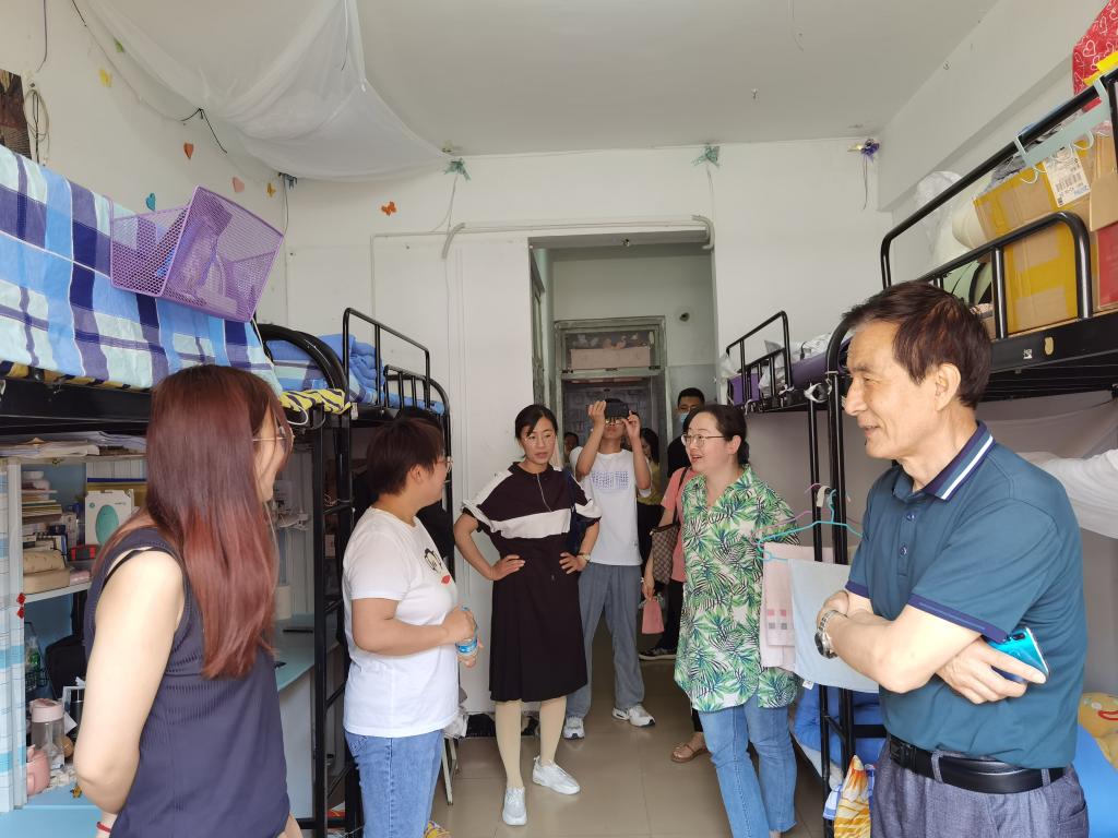 为全方位掌握毕业生在校情况,进一步落实毕业生相关工作部署,保障毕业生安全、平稳离校,6月7日上午10点,太阳成tyc7111cc经理金海珠、党总支副书记赵蓓、辅导员于小康以及班主任姜倩倩、韩明月、王晓君、秦红玉、王志宏等共同走访毕业生宿舍。