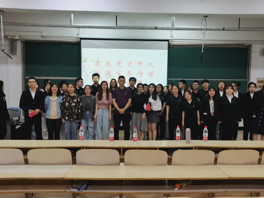 为庆祝中国共产党成立100周年,通过党史和专业知识相结合,让同学们更加深入了解党史,6月3日晚七点,太阳成tyc7111cc在一教103教室举办“采撷党史印记,浓缩百年峥嵘”知识竞赛。辅导员于小康、班主任赵蕾,团总支员工副书记张卓婷及各部部长以及大一全体员工参加。