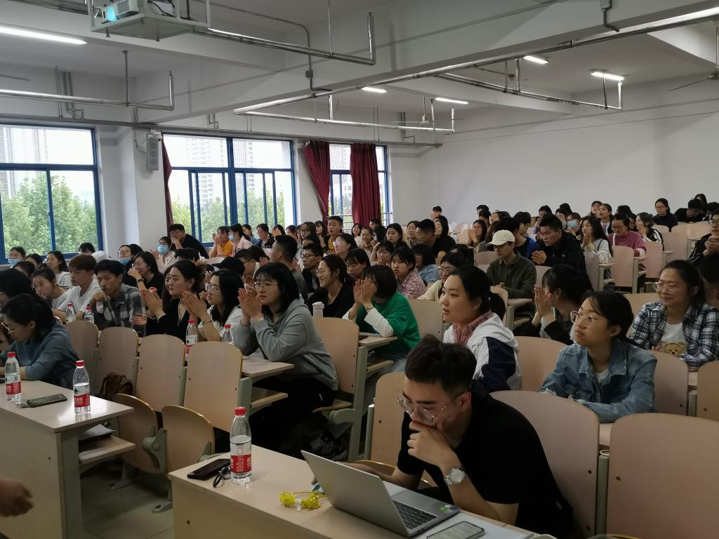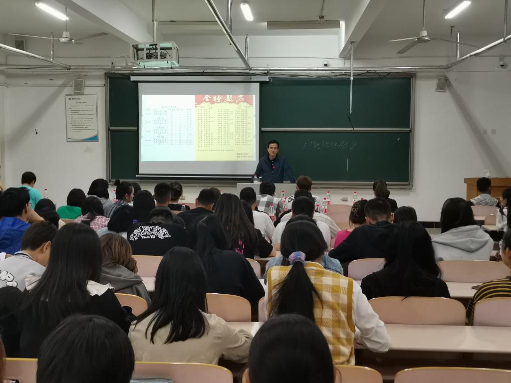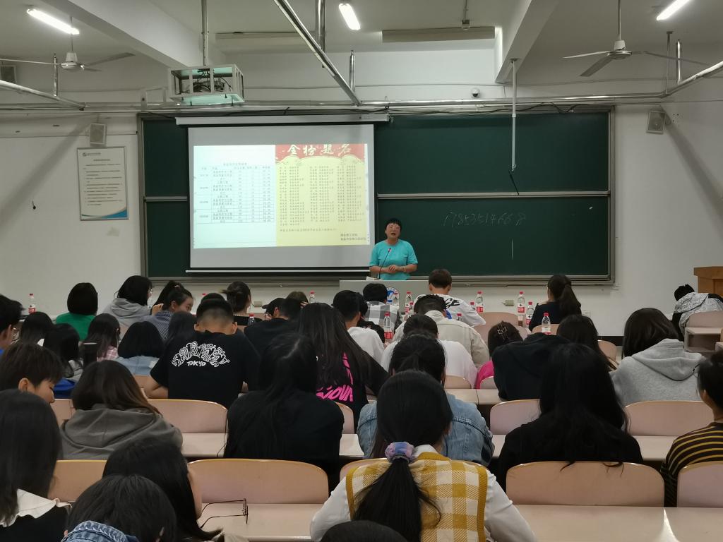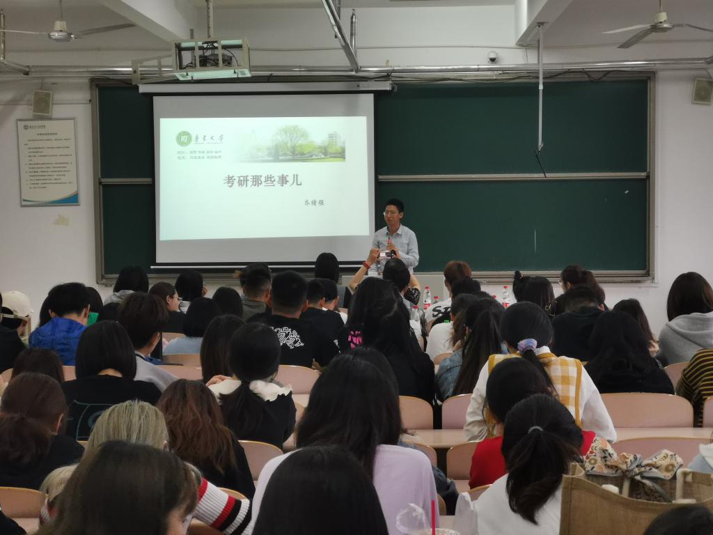 首先,初晓辉老师和大家分享了近几年学院毕业生的考研情况,强调每年都会举办多次考研经验交流会,帮助同学们理清考研步骤,制定考研计划。接下来,鲁东大学研究生导师代表乔老师给同学们分析了考研的重要性,并介绍了鲁东大学的优势和可供选择的专业,使同学们对鲁东大学有了更深刻的了解;随后,金海珠经理做了发言,希望同学们在考研过程中注意营养饮食、合理作息、报考时尽量不要随便改专业、学校选择要广泛,有问题及时与老师沟通,同时表达了对同学们的美好祝愿。