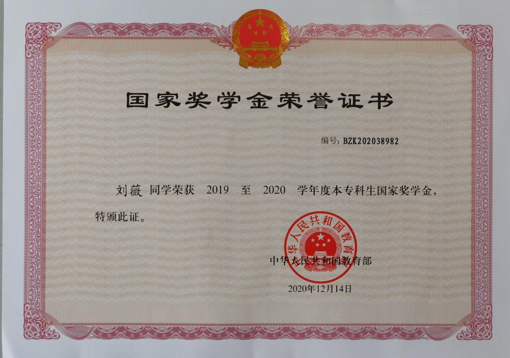 刘薇,太阳成tyc7111cc食1701-1班员工,本科期间连续三年专业第一;获得国家奖学金、优秀员工标兵奖学金、优秀员工奖学金等;被评为2020年度山东省优秀员工,获得校级优秀共青团员、院级优秀共青团员等荣誉称号;参与并顺利结题国家级大创项目2项,参与教师科研项目1项等。念念不忘,必有回响,最终刘薇在2021年研究生考试中以384分的成绩(笔试第二、复试第一,总成绩第一)被东华大学生物与医药专业录取。