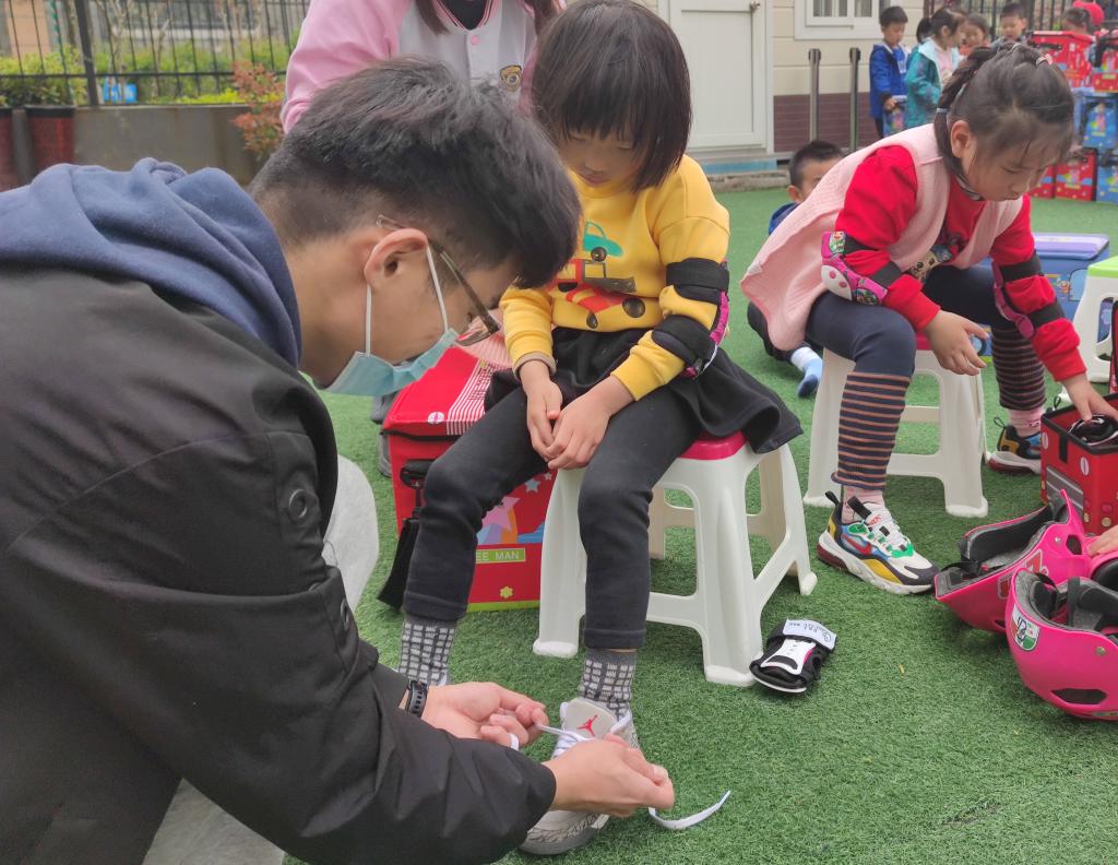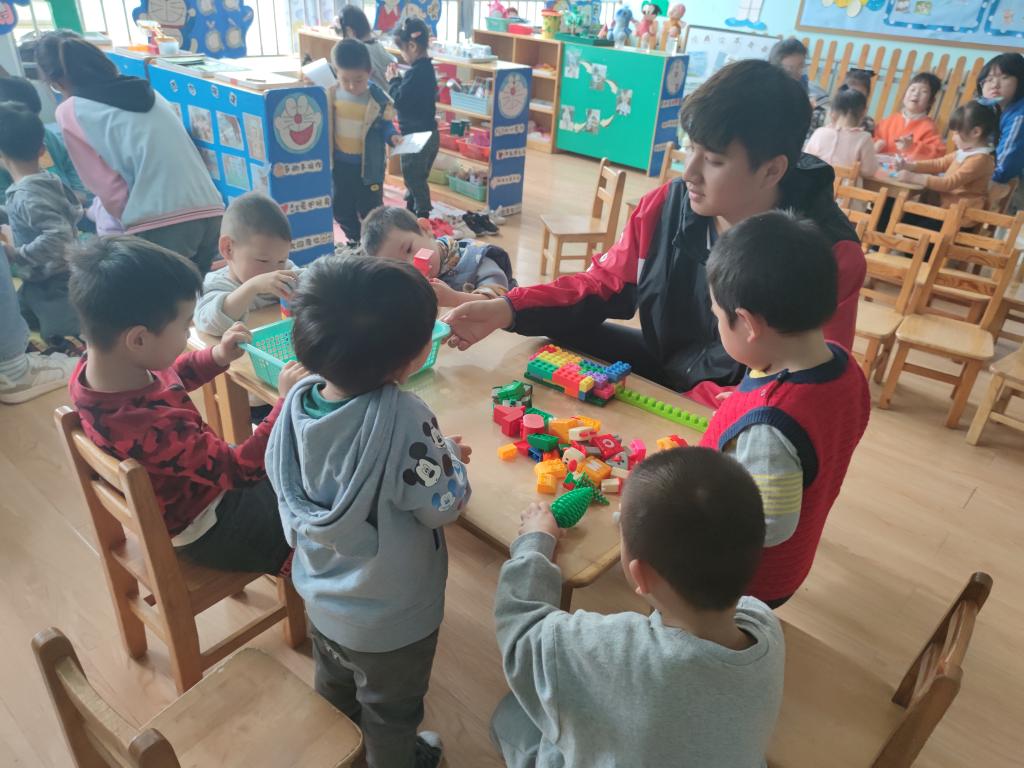 海嘉华庭幼儿园园长刘乃珍对太阳成tyc7111cc的老师、同学们表示热烈的欢迎,充分肯定了青年志愿者服务实践活动的重要作用,并对太阳成tyc7111cc的青年志愿者们表达感谢。紧接着,赵蓓老师表示,希望同学们能通过青年志愿者服务实践基地,把服务社会、奉献社会的精神印在心上,落实在行动上,能够以实际行动,进一步培育和践行社会主义核心价值观,努力培养乐观向上的人生态度和坚强仁爱的高尚品格。随后,双方对下一步如何更好的建设青年志愿者服务实践基地进行讨论。最后,青年志愿者们分工合作,帮助幼儿园的孩子们整理床铺,穿戴轮滑护具,协作幼儿园的老师为孩子们分发上午茶、与他们一起做游戏、听音乐、讲故事。