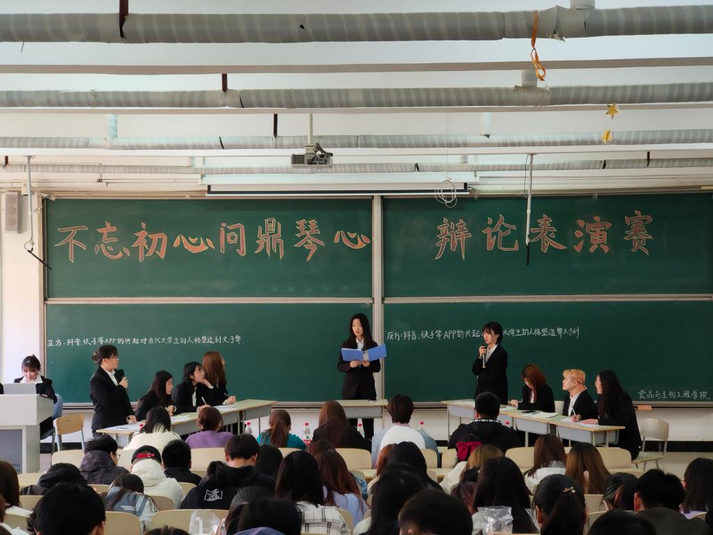 比赛开始前,正、反方辩论队的辩手入座,双方依次进行自我介绍,表演赛随之拉开序幕。正、反方辩论队围绕着辩题——“抖音、快手等APP的兴起对当代老员工的人格塑造是利大于弊,还是弊大于利”展开精彩辩论。正反方辩手循序渐进、条理清晰地阐述己方观点,并依据对方论据中的漏洞,予以反驳,从当代老员工的人格塑造主要借助于深层次阅读的立场出发,用严谨的逻辑推理,谨慎的剖析证明,再次阐明己方观点。双方幽默生动的语言,唇枪舌剑的争锋博得场下阵阵掌声。自由辩环节,反方辩手列举事例,巧妙攻辩,正方辩手也不甘示弱,言语激昂。最后,双方四辩总结陈词,措辞缜密,谈吐流利,用概括性的语言为比赛争取最后的胜利。辩论赛结束后,评委们对正、反方辩论队的表现予以充分肯定,并鼓励辩手们勤于思考,从多重角度进行理性分析。