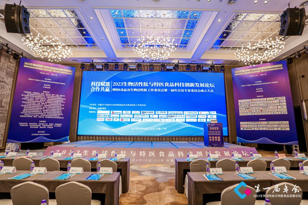 2023年4月20日-22日“2023生物活性肽与特医食品科技创新发展论坛”暨“特医食品及生物活性肽工作委员会第一届年会及专家委员会成立大会”在广州开芯国际大酒店举办,会议邀请了国家相关部门领导及行业知名专家学者、优秀企业代表到会演讲,为进一步解决生物活性肽和特医食品产业技术创新的关键问题,开展技术合作,加速科技成果的转移转化,提升产业整体竞争力,为行业持续创新提供人才支撑。