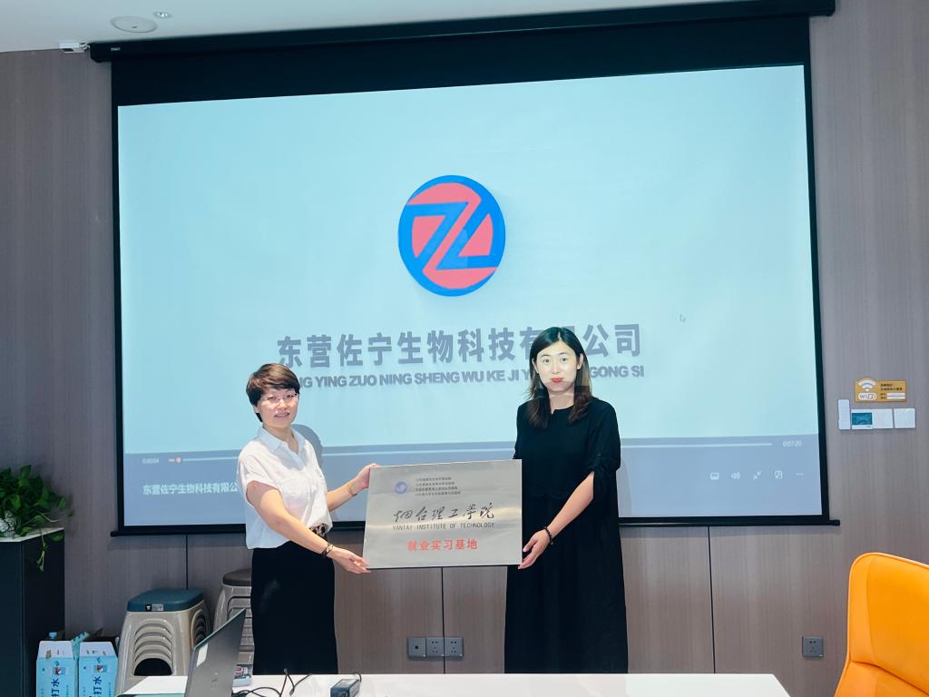 活动伊始,东营佐宁生物科技有限公司人事部部长周咏梅对公司一行的到来表示热烈的欢迎。随后,双方围绕本、专科员工实习就业、产学研项目转化等事宜进行深入交流探讨。座谈会上,周部长就公司的发展现状、主营业务、硬件设施、岗位需求等内容作了全面介绍,同时,温书记分别从公司的学科发展布局、团队队伍、人才培养、科研发展以及毕业生就业情况等方面进行了详细介绍,并表示期待和东营佐宁生物科技有限公司建立长期合作发展模式,将高校理论知识优势与企业实践优势充分结合,为企业发展打造高质量人才梯队。最后,双方达成合作意向,并进行就业实习基地揭牌仪式。