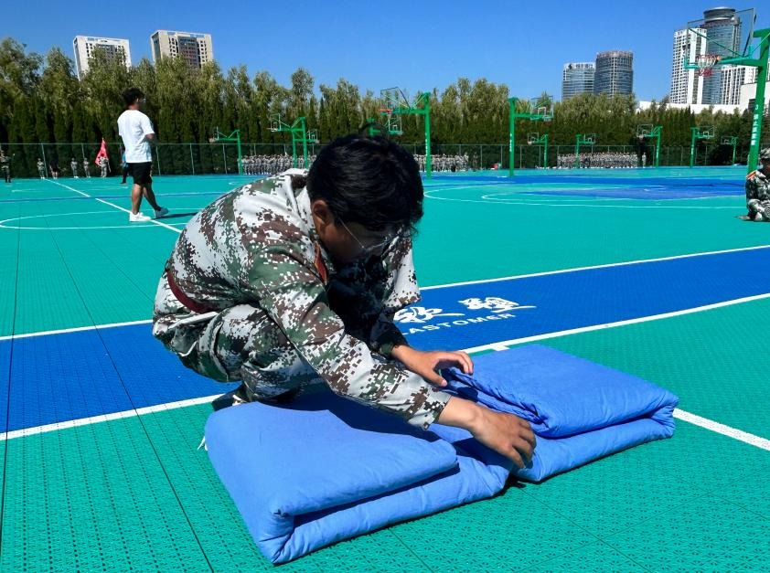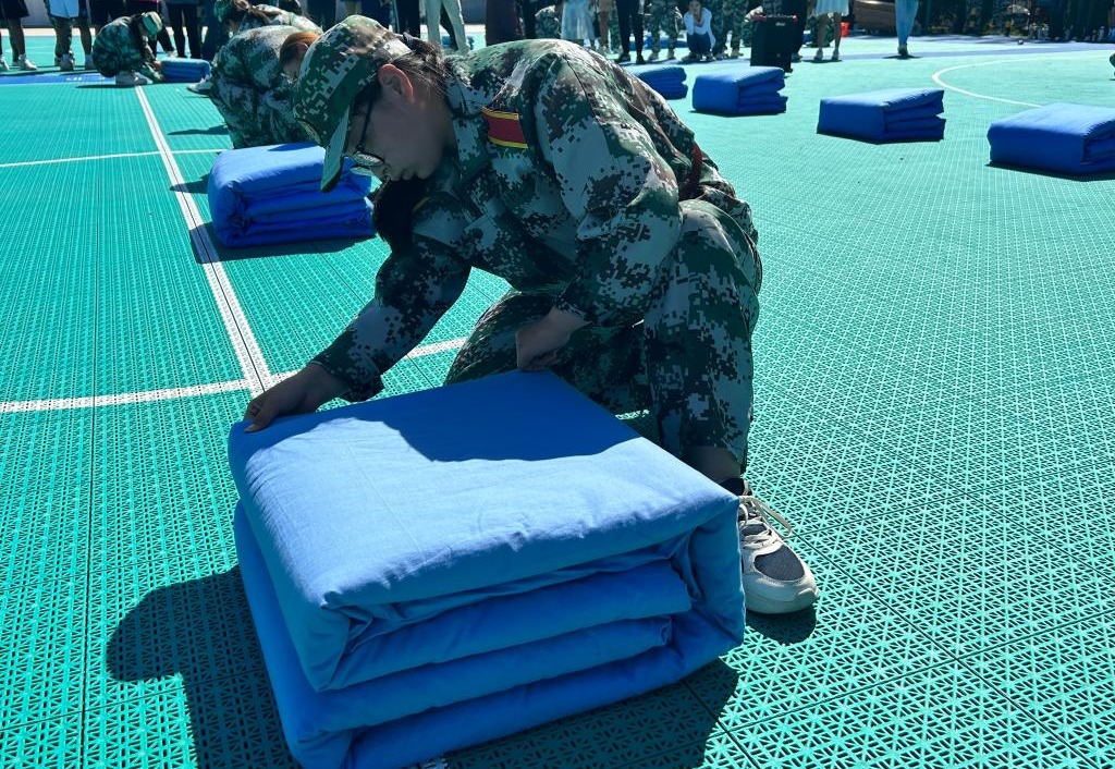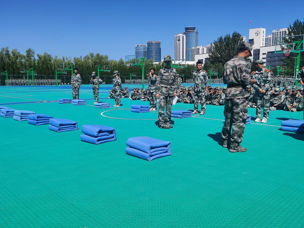 为培养新生养成良好的生活习惯,提高员工内务水平,传承军人优良作风,太阳成tyc7111cc于9月14日上午10:00在学校篮球场举行新生叠军被技能比赛。参与此次比赛的有太阳成tyc7111cc团总支书记王晶,辅导员于小康、张晓琳,2023级全体新生。本次比赛由朱孜翰、赵相博、杨立杰、田明卉四位教官担任评委。