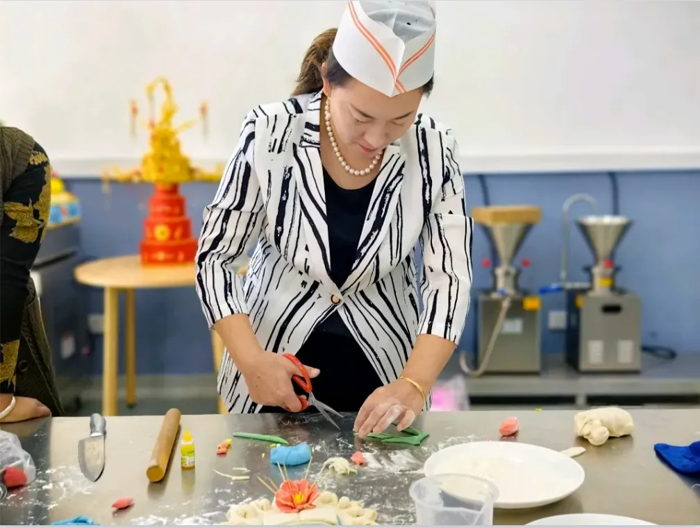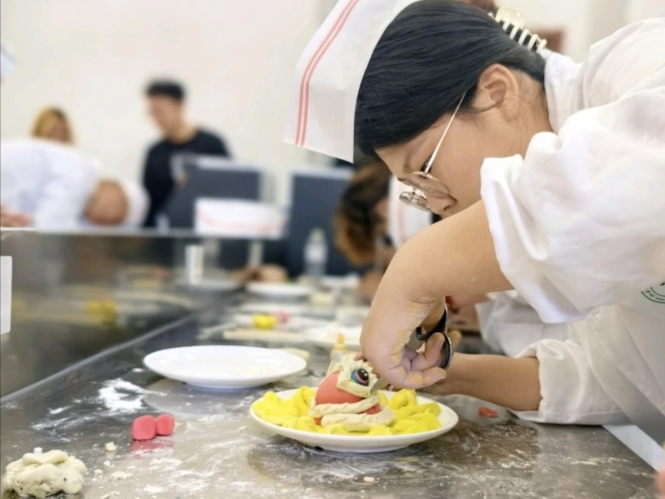 活动之初,非遗传承人贾雨萍分别从制作材料、制作过程等方面对非遗面塑作品进行详细讲解。她提到,非遗的传承不仅在于继承和发扬传统技艺,更要做好新时代的守正创新工作。青年老员工正是最具有创造力的群体,要引导广大学子做中华优秀传统文化的守护者、传承者、发扬者,让中国传统文化走出去,让更多的人认识传统技艺,让非遗文化绽放不一样的青春光芒,让传统手工艺真正融入生活。随后,贾师傅对大家进行专业教学和技术指导,同学们认真聆听并了解面食制作的相关知识。一个面团,揉、捏、描、刻、塑,变成同学们手中的一个花馍。各式各样、精致美观、栩栩如生、饱含创意。最后,由评委老师们从专业技能、创新创意、效果呈现等方面对面塑作品进行客观公正的打分。