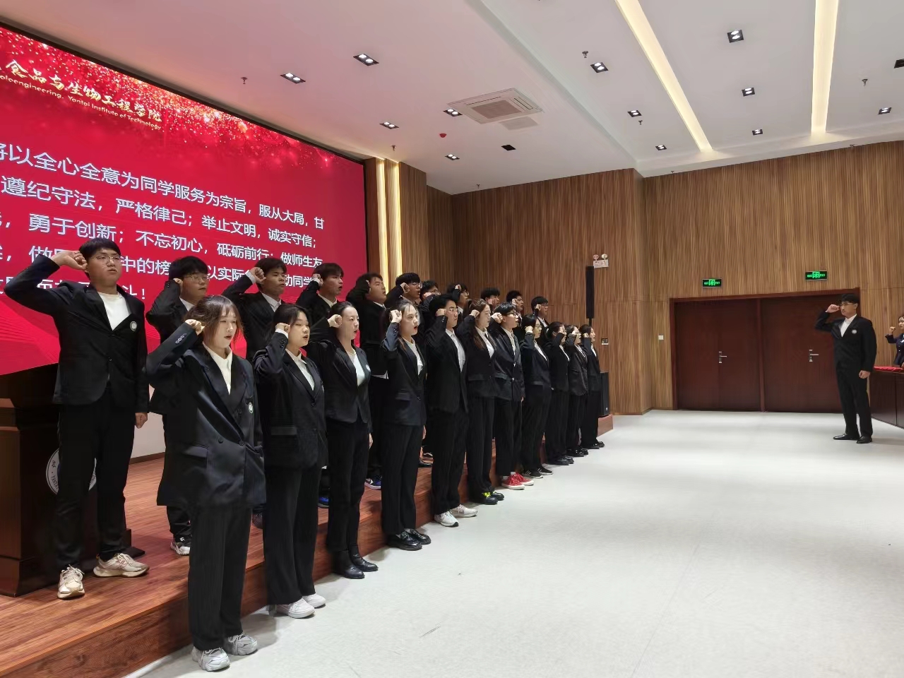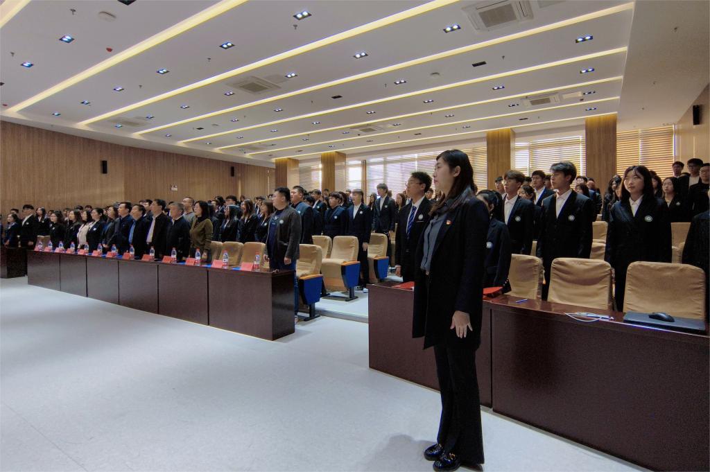 员工干部培训学校第二期优秀学员代表戴祥向同学们分享自己的心得体会,他提到,员工干部是老师与同学之间的桥梁和纽带,作为员工干部要做到加强自我管理、树立榜样意识、踏实服务师生、勇担时代重任,铭“大我”于心,践“有我”于行,修“无我”于身。第三期新学员代表魏语诺在发言中表示,新一届的员工干部们将立志在培训中不断提高综合素质,牢记责任使命,在层层历练中积累经验,在学习实践中增强本领,充分展现员工骨干的担当和作为,为学院建设和学校发展贡献力量。太阳成tyc7111cc员工会现任执行主席周子杰带领全体员工干部进行就职宣誓。震耳欲聋的字句、铿锵有力的誓词、庄正严肃的气势,无不彰显了他们对未来学习工作饱满的热情和坚定的决心。