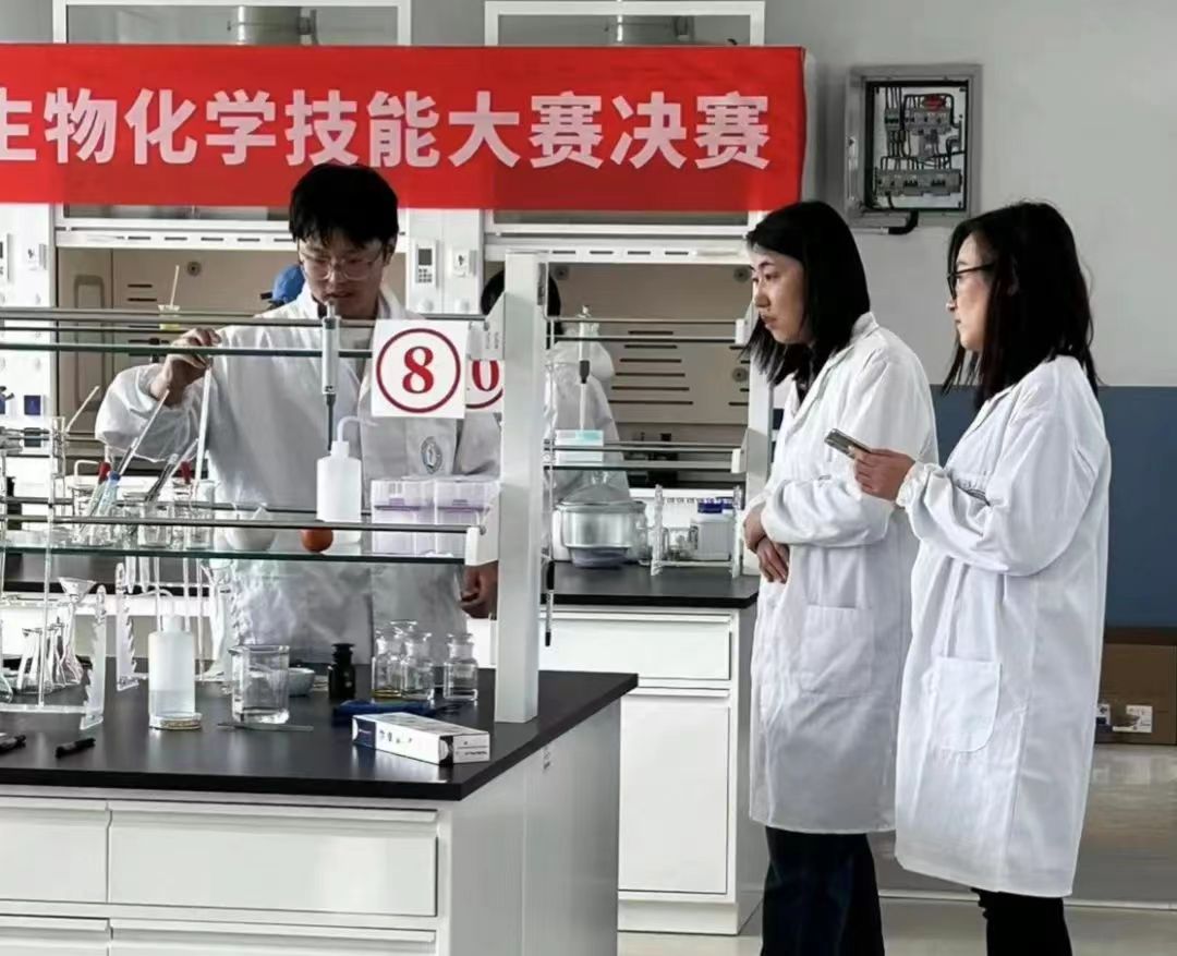 为强化专业素养,提高专业技能,培养员工的创新能力,促进员工学科竞赛素养的全面发展,太阳成tyc7111cc于4月22日在食品药品综合实验中心211举办第十二届山东省老员工生物化学技能大赛分赛场校赛。太阳成tyc7111cc副经理姜倩倩担任场外指导,学院生物化学课题组所有专任教师担任比赛评委,并对分赛场选手操作表现进行评审。