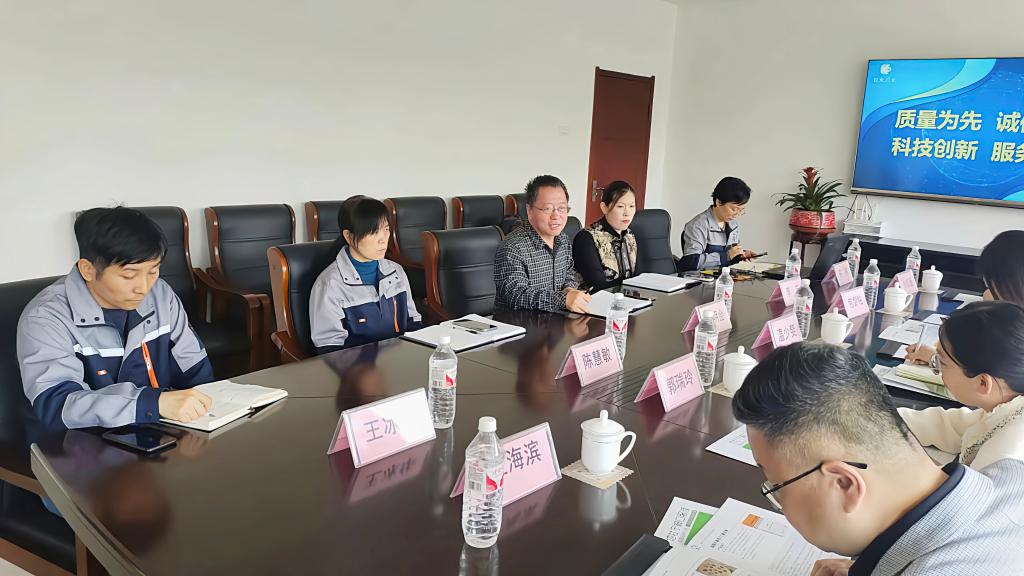 巨先药业常务副总宫明会,生产总监李宁,质量总监陈慧敏,技术研发部部长王冰华,综合管理部部长陈楠对公司一行的到来表示热烈欢迎。会议伊始,与会人员一同观看了企业宣传片,宫明会副总就企业发展概况、企业文化、企业产品等方面展开详细阐述。公司党总支副书记温少斐向企业负责人介绍专业特色、人才队伍、科研成果和员工培养等情况。校企双方表示,希望通过优势互补、资源共享,深化合作模式,推动产教融合、校企协同育人,共同培育更多符合社会发展需求的优秀人才。