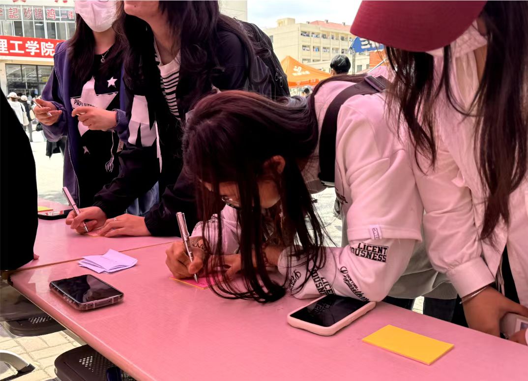 心有千千结,解之在交流;愿得心灵净,愈见美好多。活动现场,五彩斑斓的装饰物和温馨的标语交织成一幅诗意的画卷,为参与者们营造出一种如诗如画的氛围。员工们纷纷驻足,或写下心情,或细心阅读。此刻,同学们既是倾诉者,也是倾听者,心灵在此刻碰撞,情感在此刻共鸣。同学们通过分享故事,将烦恼与压力转化为美好的期许和祝福。这些期许和祝福,如同夜空中闪烁的繁星,照亮了每个人的心灵,同时也激发了他们勇往直前的动力。活动结束后,许多同学表示,这次活动如春风拂面,带来了温暖与力量,也让他们更加珍视同窗之谊。