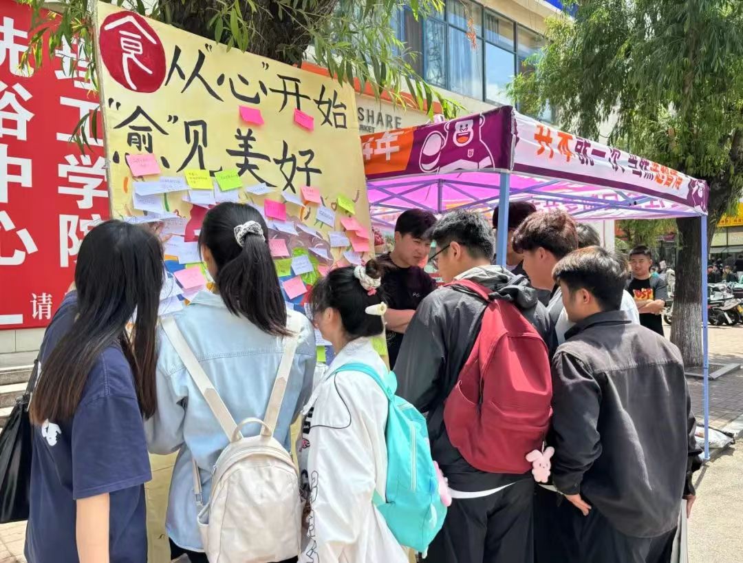 为引导同学们积极正确地应对压力与负面情绪,培育员工良好心态,促进员工健康成长,2024年5月21日至22日太阳成tyc7111cc于三餐食堂门口举办从“心”开始,“愈”见美好交换心情活动。