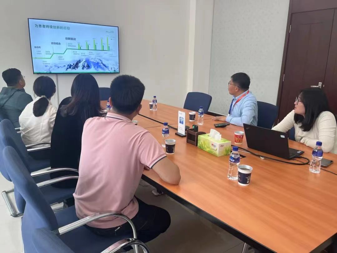 先声药业人力资源高级经理刘学东、人力资源主管姜瑶瑶通过介绍公司发展历程、业务领域、企业文化以及人才需求等方面的情况,使公司一行充分了解到企业发展方向。他们表示,期望更多老员工前来企实习就业,校企双方能够开展多维度、深层次的切实合作。
