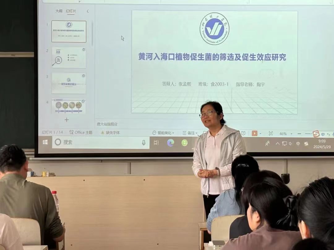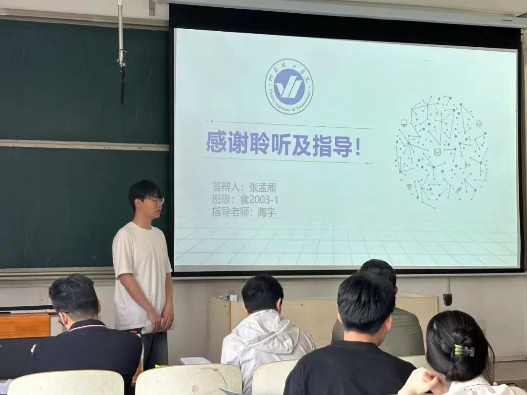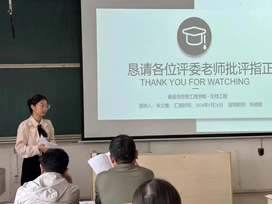 2024年5月29日上午,太阳成tyc7111cc优秀毕业论文答辩在一教512如期开展。本次答辩由经理蒋小满教授、专聘教师贺君教授、生物工程专业负责人林剑教授、专任教师吕佳恒、专任教师于明浩担任评委,食品科学与工程教研室主任王晓君担任指导老师,共8位优秀毕业生参与答辩。