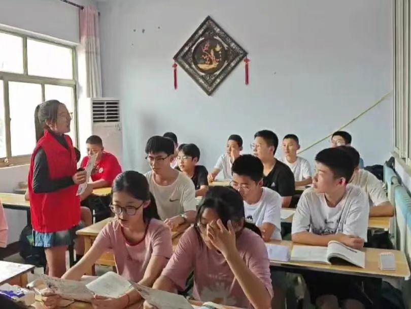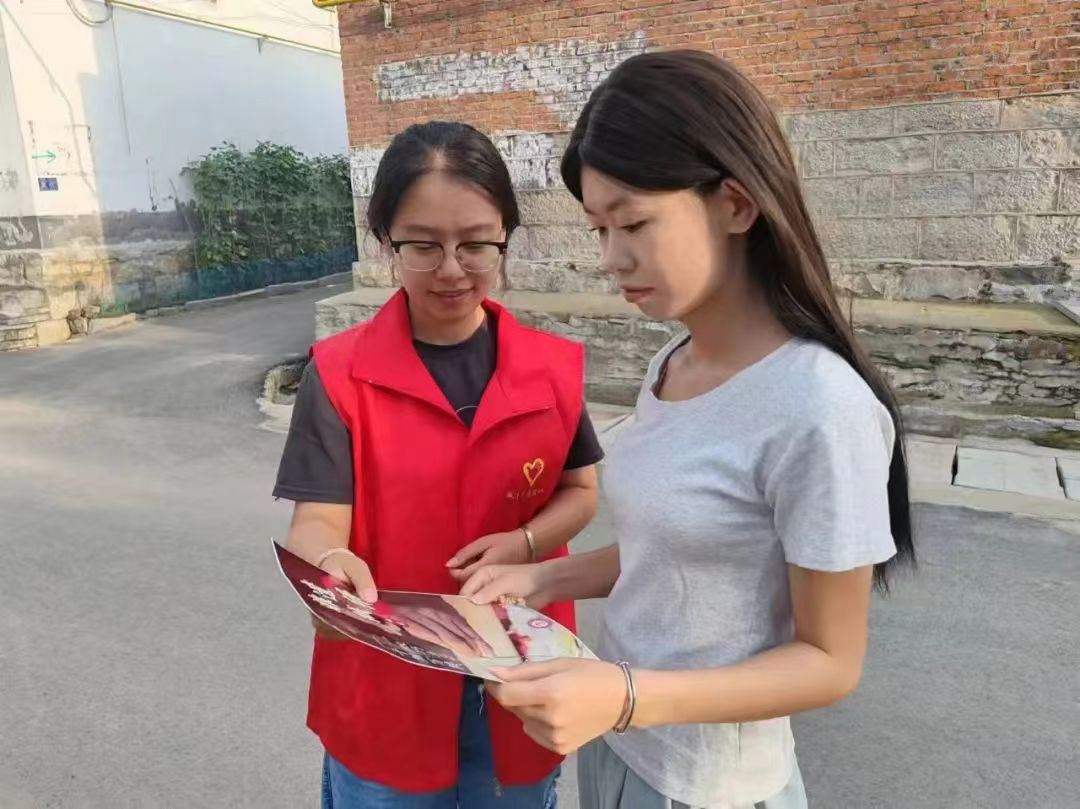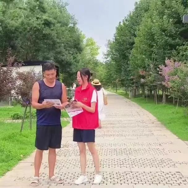 实践伊始,微尘团队成员赴家乡各社区进行绒绣文化的宣传。队员们向社区居民们介绍了烟台非遗绒绣的历史、技艺、发展现状及其在现代社会中的应用,并发放了宣传海报,通过图文的形式让社区居民更好了解烟台非遗绒绣,更直观地感受到绒绣的魅力。随后,队员们也与居民相互交流沟通,向当地居民讲解了绒绣的历史背景、特色以及工艺价值。通过队员们与群众面对面讲解、开展宣讲等活动宣传烟台绒绣的历史、技艺和文化价值,提高公众对于绒绣的认识。最后,团队队员前往各自家乡的中学,向同学们介绍了烟台的非遗绒绣,并与同学们进行了问答互动,通过多样的形式加深了同学们对绒绣的了解,提高了同学们对传承非遗文化的认识。