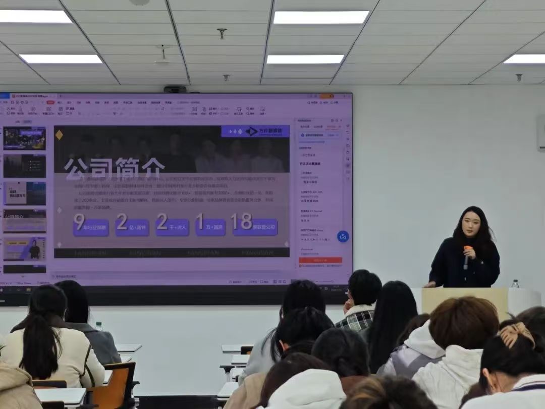 上午10点,鲁南制药、赞稼集团及方片新媒体分别于综合楼智慧教室开展了专场宣讲。鲁南制药的负责人结合自身经验与经历详细讲述了如何在职场中生存和成长,向在场同学们提出了宝贵的建议,鼓励大家积极进取、保持自信、不断成长。赞稼集团进行了企业管理干部引进说明会,并介绍了在其企业职场管理干部中的老员工榜样人物,以此激发同学们的斗志。方片新媒体HR从商务方向、内容方向、职能方向等三个方向向同学们介绍了招聘需求,并详细说明了同学们关心的几个问题,例如薪资结构、员工激励机制、福利待遇、培养与晋升体系和招聘流程等等。现场互动积极、有不少同学与公司达成就业意愿。