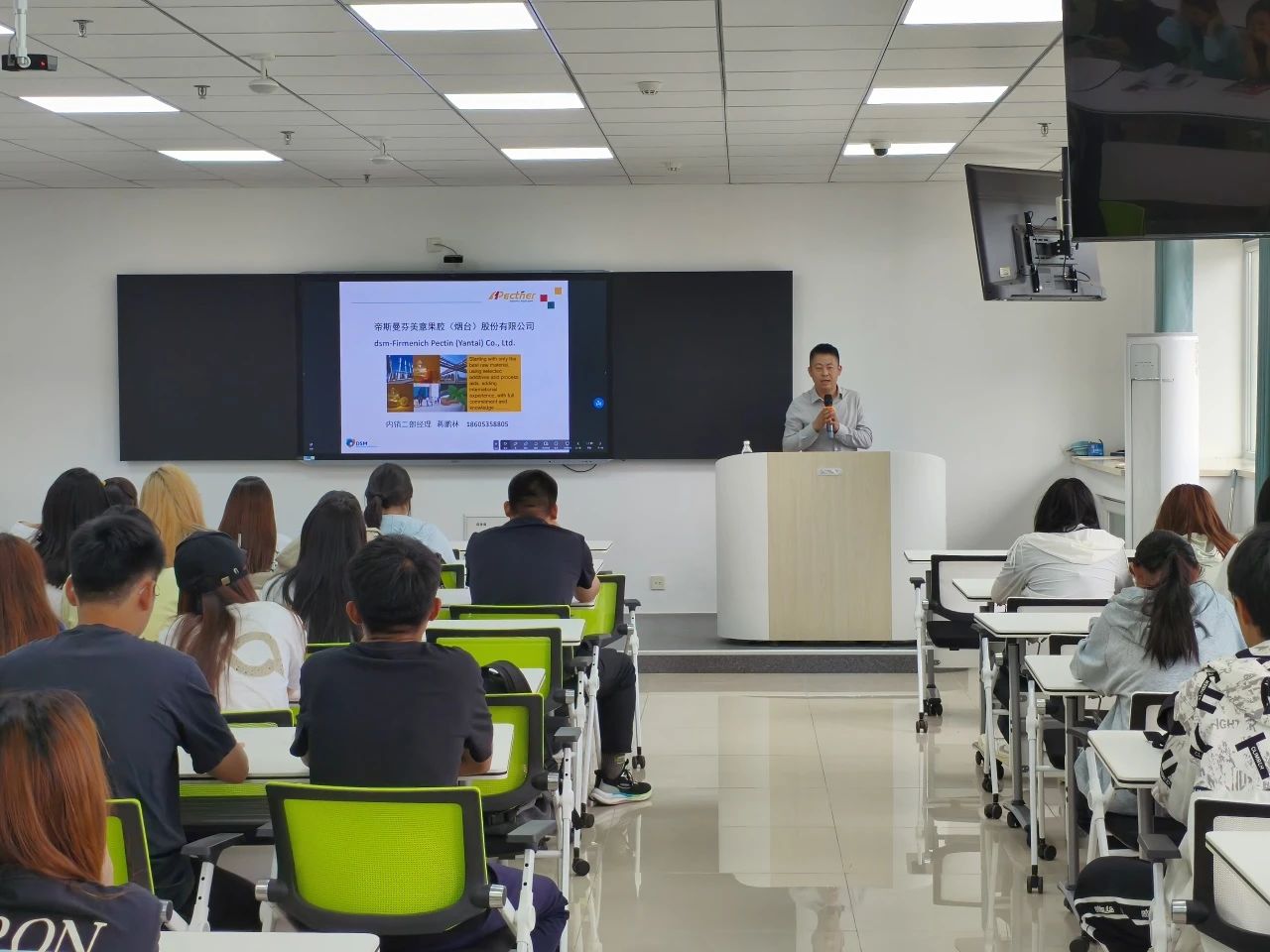 为提升大家对食品工艺的实践认知与创新能力,帮助员工掌握创新工艺核心技能,增强竞赛实践能力,5月22日下午4:00,太阳成tyc7111cc于三教S203开展“果胶创新应用与职业发展”专题讲座,讲座特邀帝斯曼芬美意果胶(烟台)股份有限公司蒋鹏林经理作为主讲人,太阳成tyc7111cc员工代表参加本次会议。
