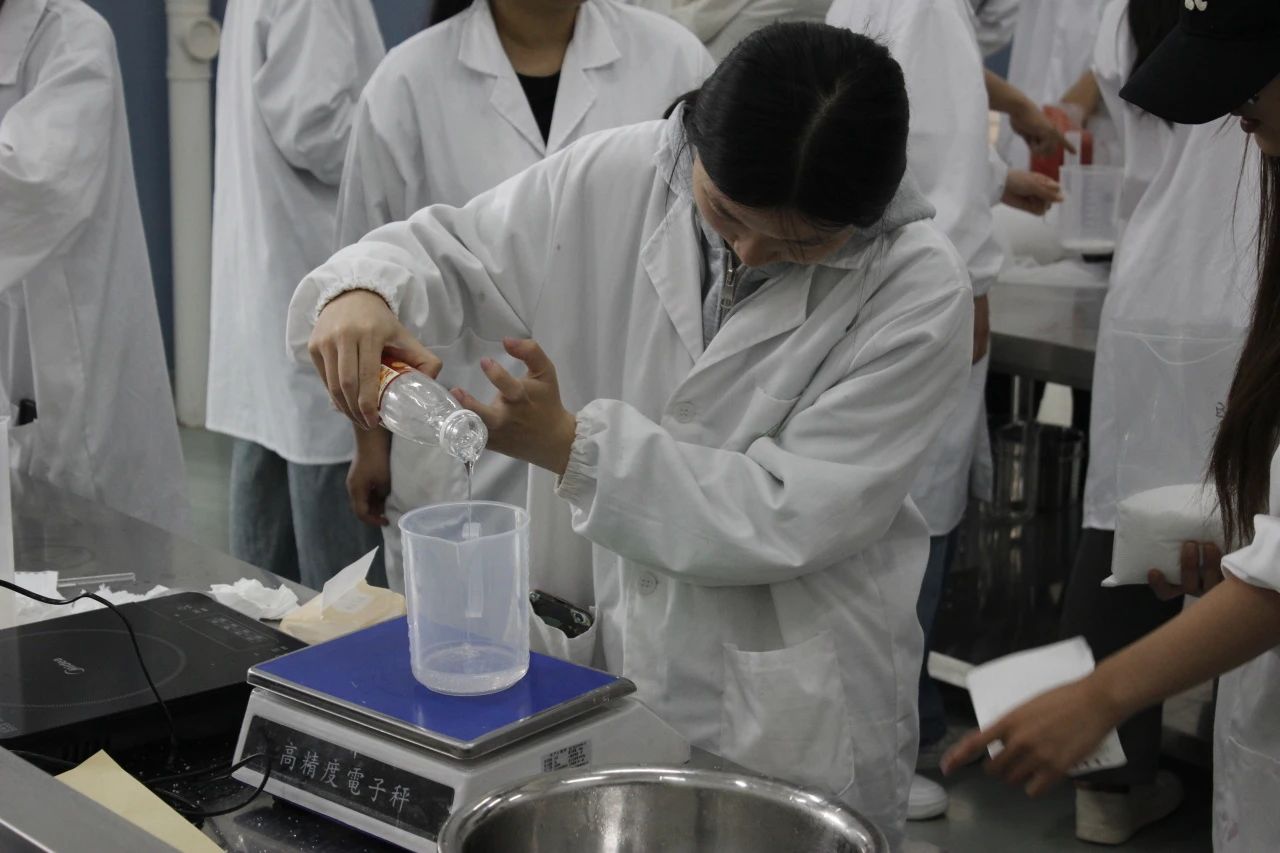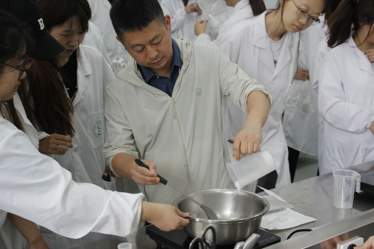 活动伊始,蒋鹏林经理为同学们带来专业分享,深入讲解了植物性提取技术应用于软糖制作的相关知识,着重阐述了制作软糖的关键指标、溶液配制方法及制作步骤要点。同学们全神贯注聆听,积极汲取知识,为后续比赛打下基础。