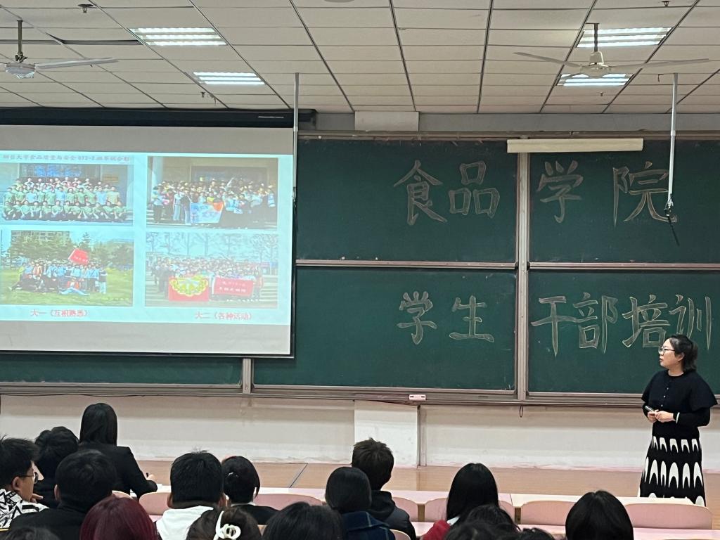 培训伊始,初老师以自己为例,向同学们分享了自己在大学期间开展班级工作、创新活动形式、加强文化建设、凝聚共识合力的心得感悟,并结合自己担任班主任的工作经历,向同学们提出了许多宝贵的建议。第一,学会向上管理和包容他人;第二,学会情绪管理和有效沟通;第三,要为人善良、但留锋芒;第四,要直面困难、把握机遇;第五,要善于创新、打破常规;第六,要慎独慎微、慎始慎终。随后,初老师给2022级全体员工干部布置了一项开放性作业,以班为单位、以部门为单位组织策划一场有温度、有创意的主题活动,并于两周后进行成果展示。最后,初老师送给员工干部一句话:“坚持做一样的事情,尝试做不一样的事情”,希望各位员工干部能凝心聚力、勇担重任、务实笃行、行稳致远。
