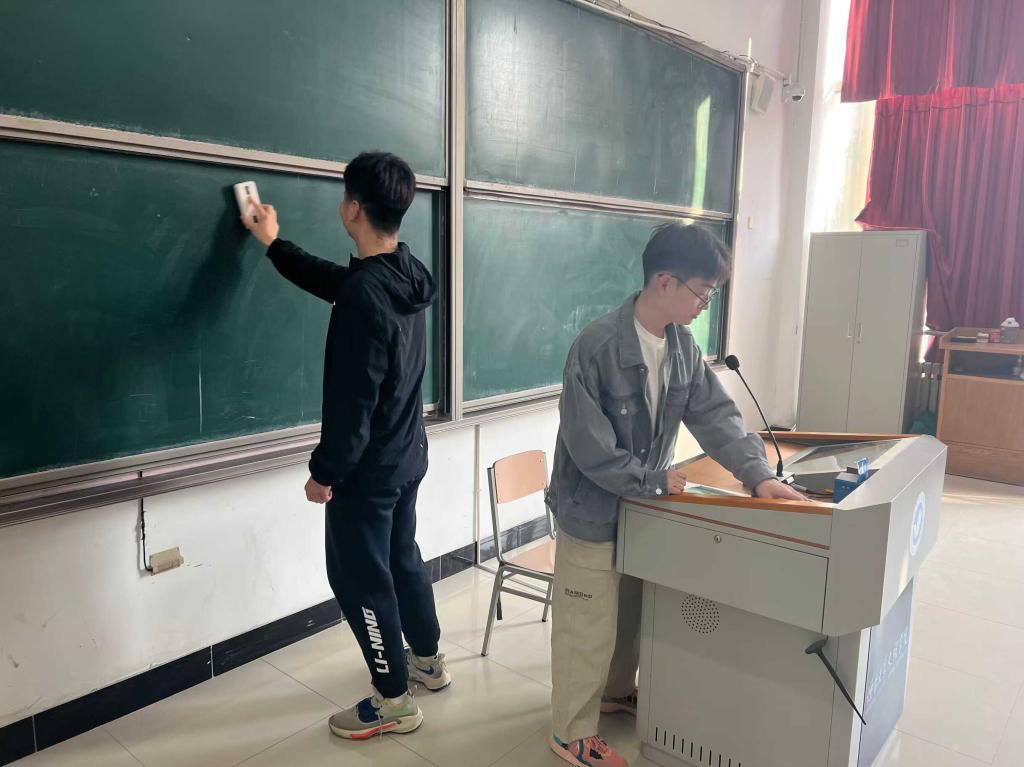 活动中,公司团学干部自发分成多个小组,分工明确、团结合作,认真积极对二教的教室、走廊等区域进行全方位清扫,为全校师生提供一个干净、整洁、温馨的学习环境。他们用自己的实际行动为文明校园创建奉献了自己的一份力量,让师生真切地感受到了食品学子带来的温暖与热情,践行了“全心全意为同学服务”的宗旨,彰显了新时代青年无私奉献的责任担当和昂扬向上的精神风貌。打扫教室事情虽小,但体现的是志愿者们认真工作的态度和为同学服务的热情,切实充分发挥了团学干部的表率作用。