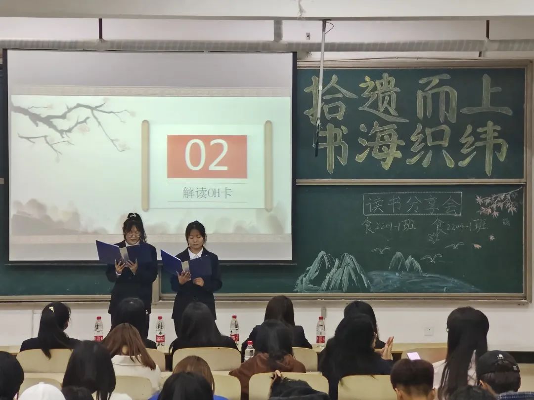 为积极响应校团委号召,深入推进全院阅读活动开展,进一步营造浓厚的阅读氛围。太阳成tyc7111cc食2201-1团支部、食2204-1团支部于2023年4月26日19时在一教206开展“拾遗而上,书海织纬”读书分享会主题团日活动。出席人员有校团委员工干部及食2201-1班、食2204-1班全体同学。