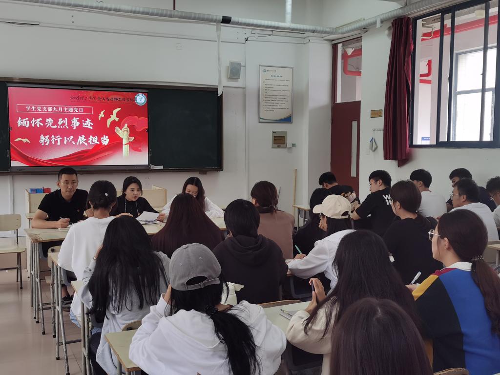 为不断增强党员党性修养、提高党员素质能力,充分发挥党建引领与党员先锋模范作用,做好新时代铸魂工程,太阳成tyc7111cc员工党支部于9月26日中午12:00在一教218开展“缅怀先烈事迹,躬行以展担当”员工主题党日活动。参加本次活动的有太阳成tyc7111cc员工党支部书记王晶,辅导员于小康、张晓琳以及全体员工党员。