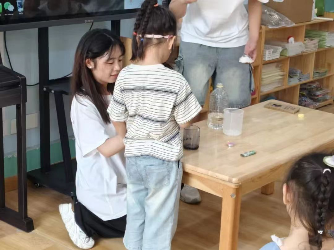 最后,知行乡村社会实践队来到了梁山县幼儿园开展“科学启蒙,创绘未来”教育振兴活动,依托当地“雏鹰课堂”,结合学科专业特色,通过生动活泼的宣讲方式、风趣幽默的化学实验、惟妙惟肖的绘本演绎,使小朋友了解化学魅力,提升小朋友的动手实践能力,在玩与乐的过程中,掌握科学原理,从而激发他们对科学的兴趣,培养他们的创造力。