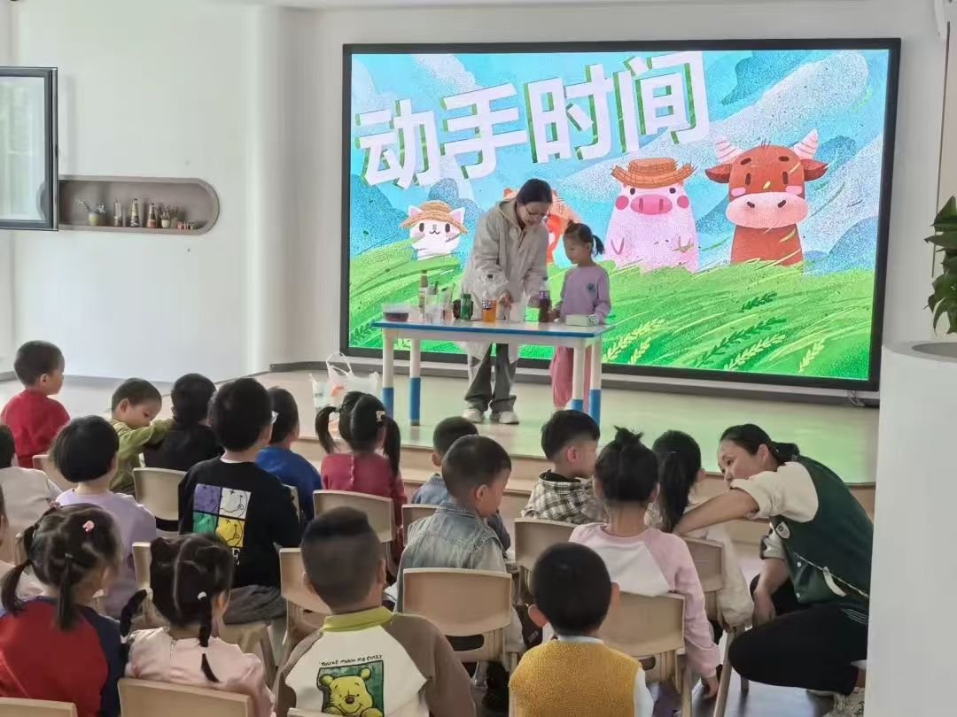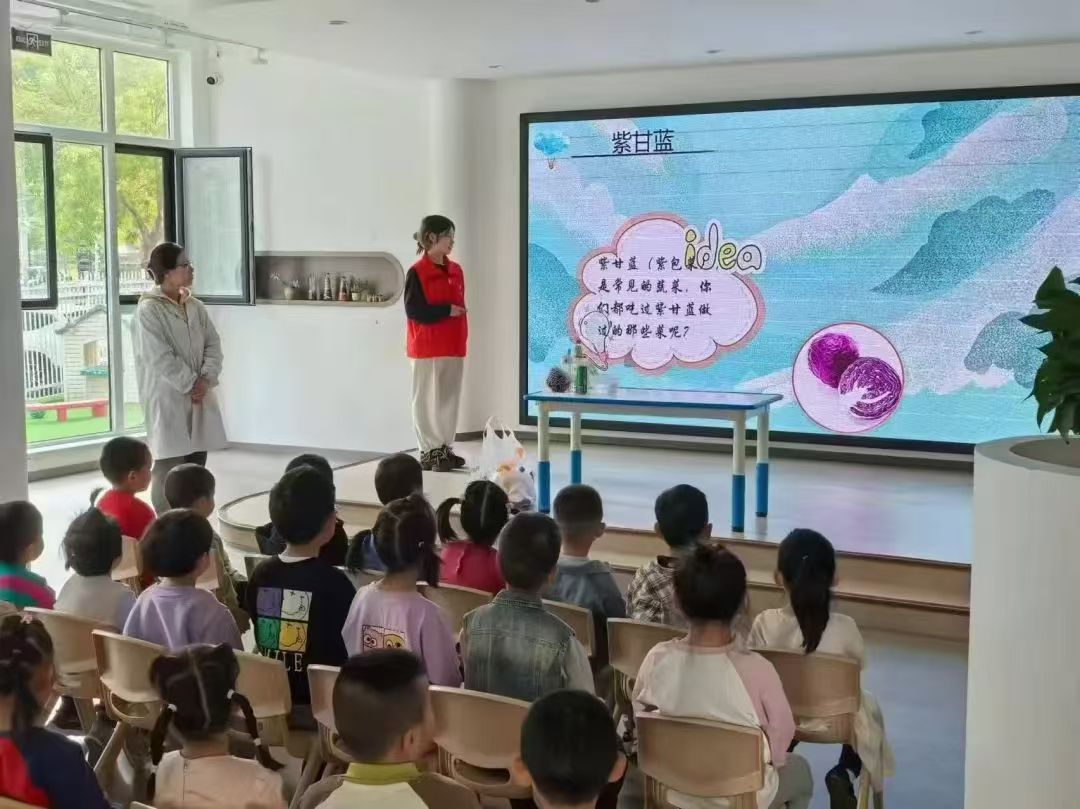 活动伊始,刘晓琳老师以《变色的紫甘蓝》实验吸引了小朋友的目光。志愿者们将紫甘蓝切碎放入热水中浸泡,清水被染成鲜艳的紫色后,分别将白醋、小苏打等不同的溶液倒入紫甘蓝汁中,发生了神奇的变化。刘晓琳老师向小朋友们解释,是因为紫甘蓝含花青素,能在不同酸碱度的溶液中呈现出不同的颜色。随后,志愿者又带领小朋友进行了《饮料实验》,通过滴入色素模拟饮料颜色,再用滤纸对混合了色素的清水进行过滤,过滤后饮料的颜色变浅至透明,志愿者借此讲解了色素的性质以及过滤的原理。通过充满趣味的食品科学小实验,使小朋友们对化学知识有了更深入的了解,他们听得津津有味,积极参与互动,现场氛围活跃而温馨。