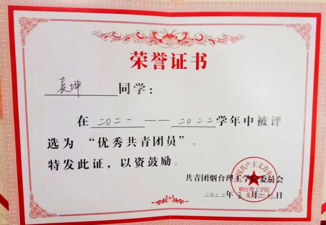 所获荣誉:曾担任网络技术部部长,2021-2022学年校优秀团员,第七届老员工电影节最具影响力影片,校篮球赛季军。