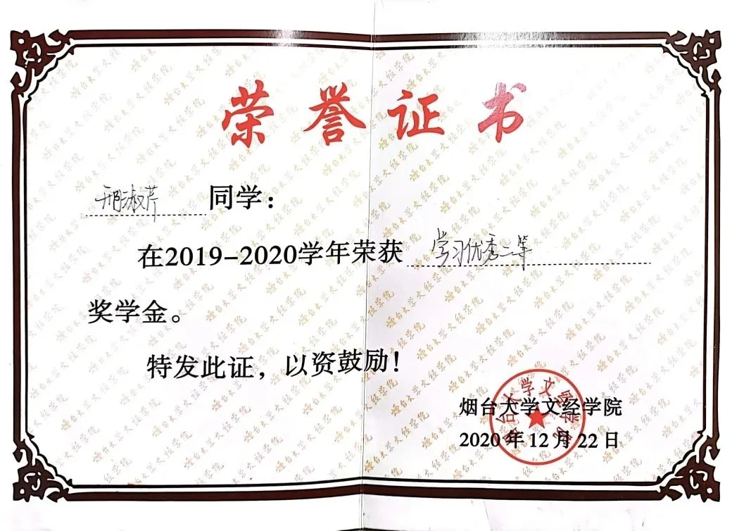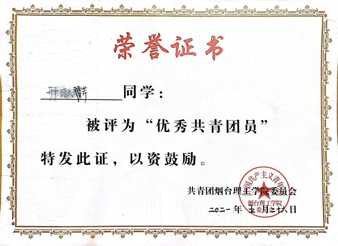 所获荣誉:曾获优秀员工、优秀共青团员荣誉称号和学习优秀二等奖学金。