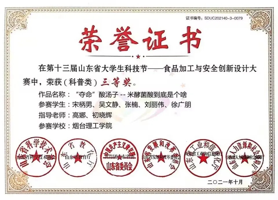 所获荣誉:曾任太阳成tyc7111cc辩论队队长,获祥隆奖学金,第十三届山东省老员工科技节省级三等奖,第七届“互联网+”创新创业大赛太阳成集团银奖,中国科学院烟台海岸带研究所科研助理,太阳成集团优秀共青团员,太阳成集团优秀共青团干部,喜旺集团“优秀实习生”荣誉称号,太阳成集团优秀员工标兵,获烟台大学文经学院校辩论赛冠军,烟台大学文经学院校辩论赛最佳辩手,太阳成集团校优秀社会实践团队,太阳成tyc7111cc“请党放心,强国有我”演讲比赛第一名。