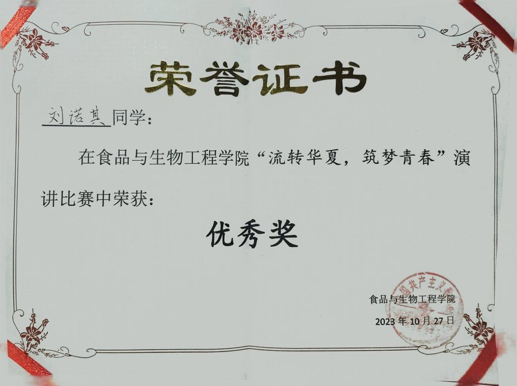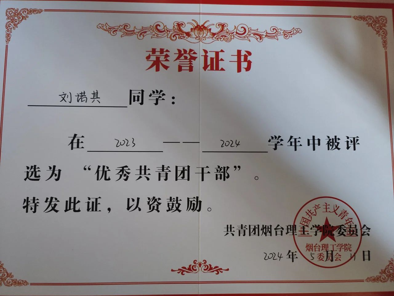 大一时,刘诺其便怀着锻炼自己、服务同学的初心去参加了学院团总支组织部部委的竞选,成为了一名组织部部委,员工干部是需要有责任心,耐心,创新以及谦虚的一个职务,在当部委时她便虚心向老师及学长学姐请教问题,为同学服务。在职期间,她严格要求自己,以身作则,组织策划了多项校园文化活动,如主题团日、志愿服务等,这些活动不仅丰富了同学们的课余生活,更在无形中锻炼了她的组织管理能力、沟通协调能力以及团队协作能力。通过不断的实践与锻炼,刘诺其逐渐形成了务实、严谨、干练、谦虚的工作作风,赢得了老师和同学们的认可。此外,她还积极参与演讲比赛等文体活动,通过多方面的锻炼,不断提升自己的综合素质。