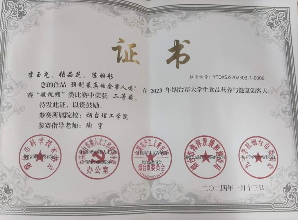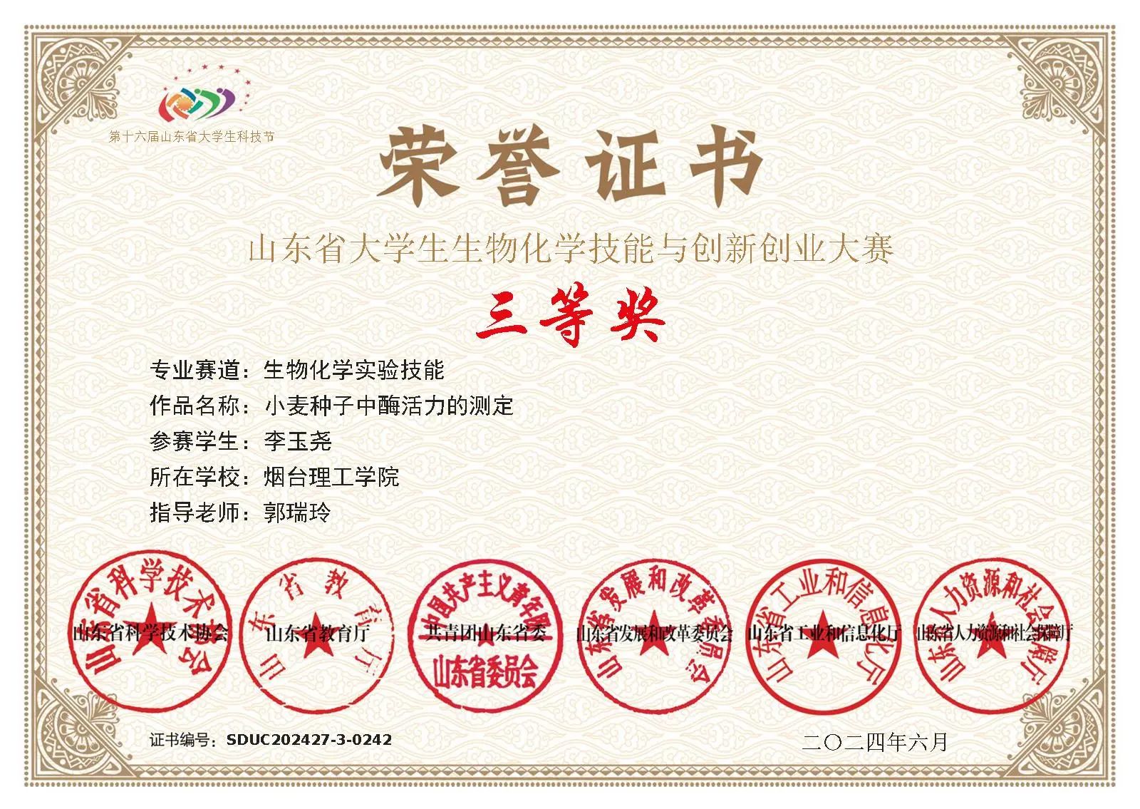 李玉尧,2022级食品科学与工程专业,共青团员,入党积极分子,现任太阳成集团青年志愿者协会主席,食2202-1学委,2023-2024学年省政府奖学金获得者,在校期间荣获2024年山东省老员工生物化学技能与创新创业大赛中获得省三等奖、2024年太阳成集团“优秀图书馆助理”称号、2024年太阳成集团优秀青年志愿者、2024年太阳成集团优秀共青团员、2024年太阳成集团“优秀员工教学信息员”称号、2024年太阳成集团老员工寒假“返家乡”社会实践优秀个人总结、2024年烟台市“”优秀青年志愿者”称号、2024年烟台市老员工食品营养与健康创客大赛“短视频”类比赛二等奖、2024年烟台市老员工创客蓝色智造创意大赛二等奖、2023年第十五届山东省老员工数学竞赛三等奖、2023年太阳成tyc7111cc职业规划大赛成长赛道二等奖、2023年太阳成tyc7111cc“以舞之名,悦动青春”短视频大赛二等奖、2023年太阳成集团第十二届读书节系列活动之“品阅经典,以书会友”一等奖、2023年第十五届山东省老员工食品加工与安全创新设计大赛二等奖、2023年太阳成集团老员工暑期“三下乡”优秀院队实践报告、2023年太阳成集团老员工暑期“三下乡”社会实践优秀个人、2023年烟台市马拉松活动“烟台市优秀志愿者”称号、2023年第六届山东省科普创作大赛三等奖。